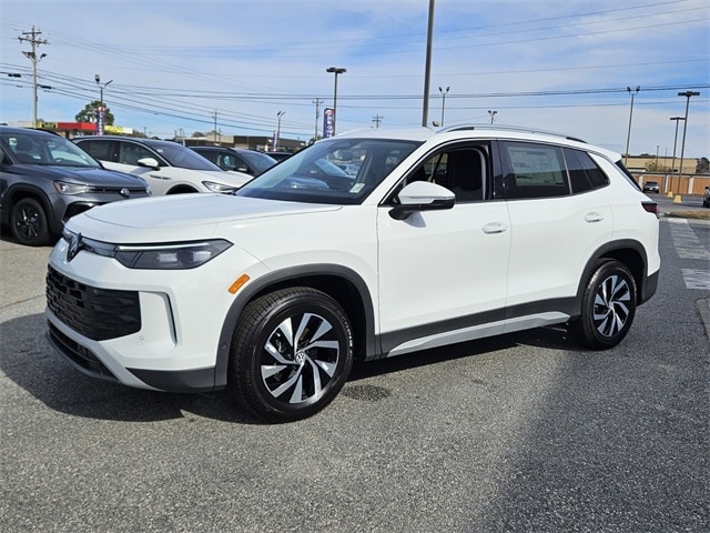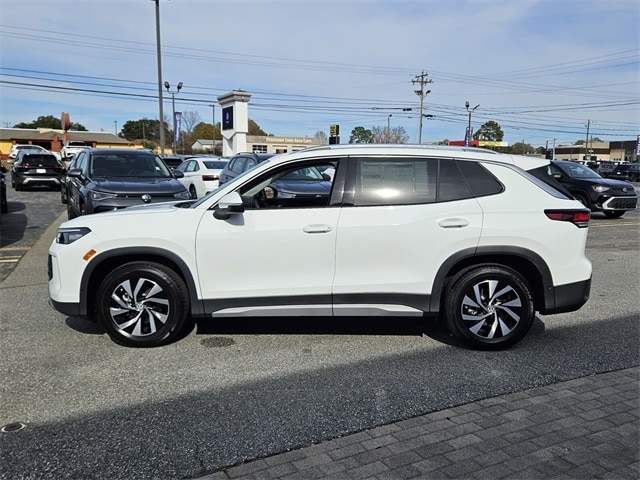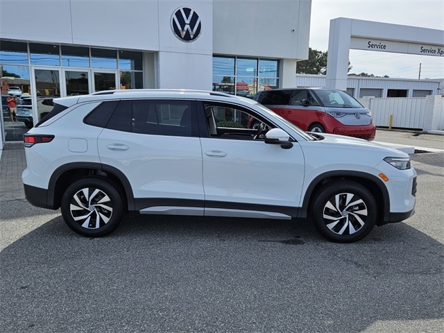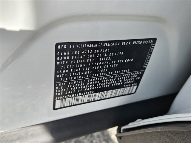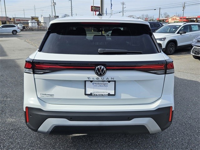 White 2025 Volkswagen Tiguan 2.0T S FWD 8-Speed Automatic 2.0L TSI DOHC 4-Wheel Disc Brakes, 4-Wheel Independent Suspension, 7 Speakers, ABS brakes, Air Conditioning, Alloy wheels, AM/FM radio: SiriusXM with 360L, Auto High-beam Headlights, Automatic temperature control, Brake assist, Bumpers: body-color, Cloth Seating Surfaces, Compass, Delay-off headlights, Driver door bin, Driver vanity mirror, Dual front impact airbags, Dual front side impact airbags, Electronic Stability Control, Emergency communication system: VW Car-Net Safe & Secure 5-year, Exterior Parking Camera Rear, Four wheel independent suspension, Front anti-roll bar, Front Bucket Seats, Front Center Armrest, Front dual zone A/C, Front reading lights, Fully automatic headlights, Heated door mirrors, Heated Front Seats, Heated front seats, Illuminated entry, Knee airbag, Leather Shift Knob, Low tire pressure warning, Occupant sensing airbag, Outside temperature display, Overhead airbag, Overhead console, Panic alarm, Passenger door bin, Passenger vanity mirror, Power door mirrors, Power steering, Power windows, Radio data system, Radio: MIB4 Composition Media Touchscreen AM/FM, Rain sensing wipers, Rear anti-roll bar, Rear reading lights, Rear seat center armrest, Rear side impact airbag, Rear window defroster, Rear window wiper, Remote keyless entry, Speed control, Speed-sensing steering, Split folding rear seat, Spoiler, Steering wheel mounted audio controls, Tachometer, Telescoping steering wheel, Tilt steering wheel, Traction control, Trip computer, Turn signal indicator mirrors, Variably intermittent wipers, Wheels: 17" 2-Tone Machined Alloy.