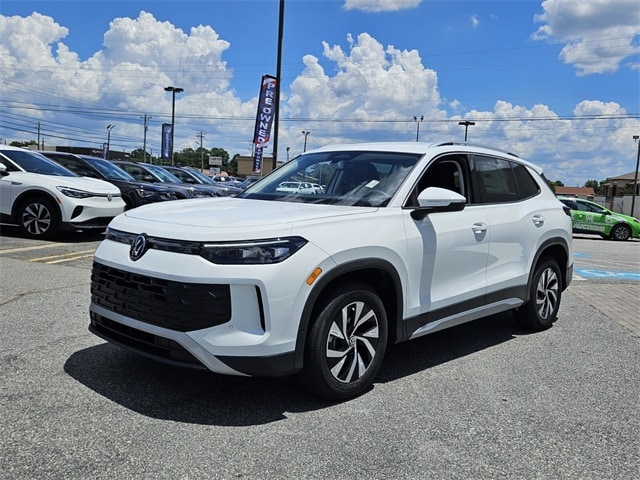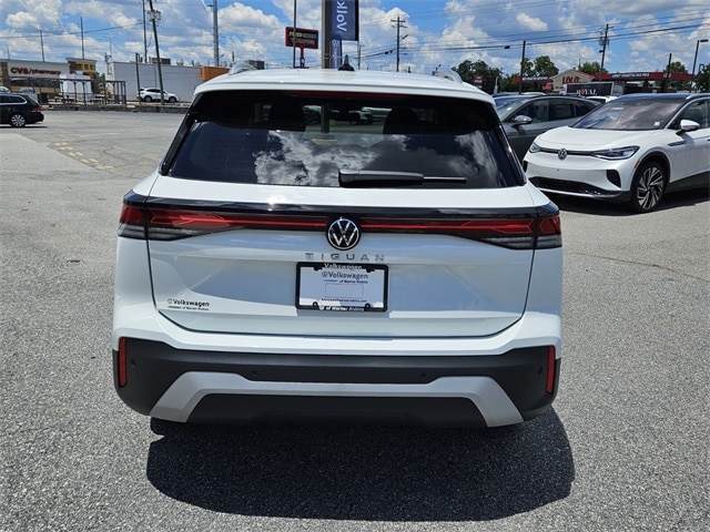 White 2025 Volkswagen Tiguan 2.0T S FWD 8-Speed Automatic 2.0L TSI DOHC 4-Wheel Disc Brakes, 4-Wheel Independent Suspension, 7 Speakers, ABS brakes, Air Conditioning, Alloy wheels, AM/FM radio: SiriusXM with 360L, Auto High-beam Headlights, Automatic temperature control, Brake assist, Bumpers: body-color, Cloth Seating Surfaces, Compass, Delay-off headlights, Driver door bin, Driver vanity mirror, Dual front impact airbags, Dual front side impact airbags, Electronic Stability Control, Emergency communication system: VW Car-Net Safe & Secure 5-year, Exterior Parking Camera Rear, Four wheel independent suspension, Front anti-roll bar, Front Bucket Seats, Front Center Armrest, Front dual zone A/C, Front reading lights, Fully automatic headlights, Heated door mirrors, Heated Front Seats, Heated front seats, Illuminated entry, Knee airbag, Leather Shift Knob, Low tire pressure warning, Occupant sensing airbag, Outside temperature display, Overhead airbag, Overhead console, Panic alarm, Passenger door bin, Passenger vanity mirror, Power door mirrors, Power steering, Power windows, Radio data system, Radio: MIB4 Composition Media Touchscreen AM/FM, Rain sensing wipers, Rear anti-roll bar, Rear reading lights, Rear seat center armrest, Rear side impact airbag, Rear window defroster, Rear window wiper, Remote keyless entry, Speed control, Speed-sensing steering, Split folding rear seat, Spoiler, Steering wheel mounted audio controls, Tachometer, Telescoping steering wheel, Tilt steering wheel, Traction control, Trip computer, Turn signal indicator mirrors, Variably intermittent wipers, Wheels: 17" 2-Tone Machined Alloy.