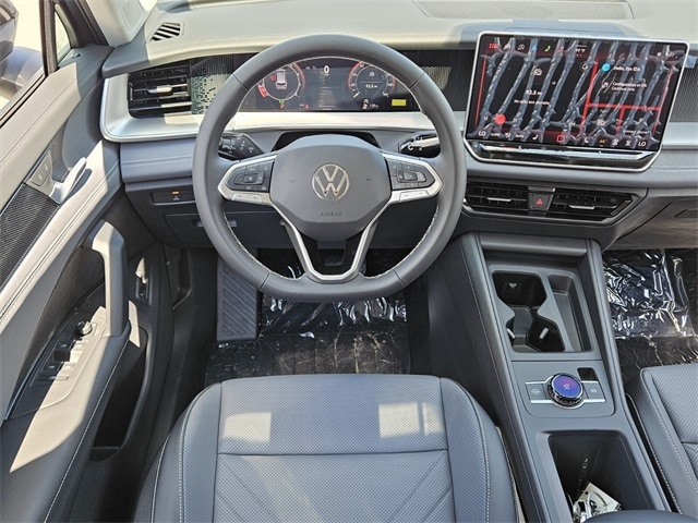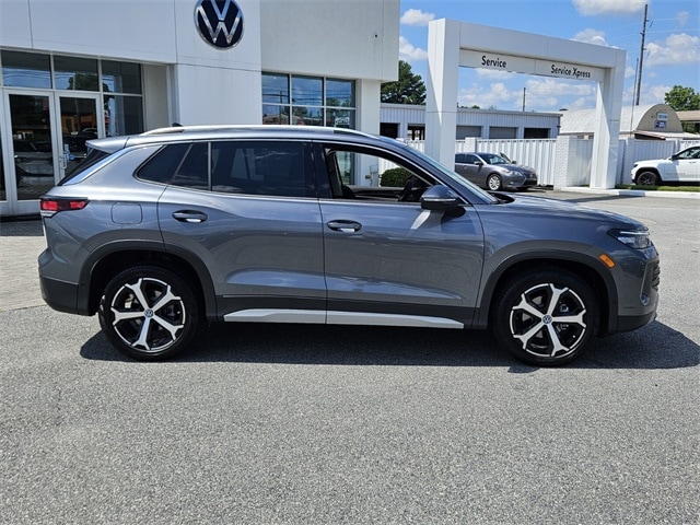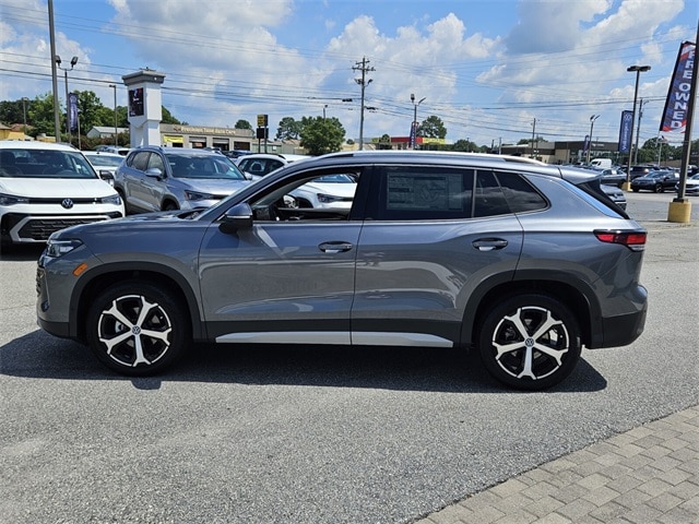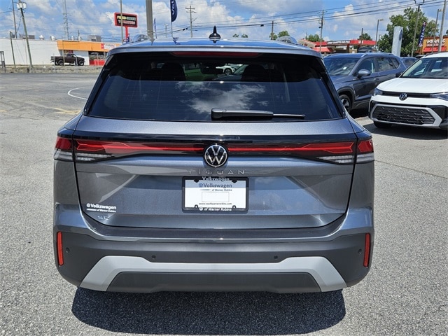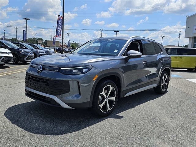 Gray Metallic 2025 Volkswagen Tiguan 2.0T SE FWD 8-Speed Automatic 2.0L TSI DOHC 4-Wheel Disc Brakes, 4-Wheel Independent Suspension, 7 Speakers, ABS brakes, Air Conditioning, Alloy wheels, AM/FM radio: SiriusXM with 360L, Auto High-beam Headlights, Auto-dimming Rear-View mirror, Automatic temperature control, Brake assist, Bumpers: body-color, Compass, Delay-off headlights, Driver door bin, Driver vanity mirror, Dual front impact airbags, Dual front side impact airbags, Electronic Stability Control, Emergency communication system: VW Car-Net Safe & Secure 5-year, Exterior Parking Camera Rear, Four wheel independent suspension, Front anti-roll bar, Front Bucket Seats, Front Center Armrest, Front dual zone A/C, Front reading lights, Fully automatic headlights, Heated door mirrors, Heated Front Seats, Heated front seats, Illuminated entry, Knee airbag, Leather Shift Knob, Low tire pressure warning, Occupant sensing airbag, Outside temperature display, Overhead airbag, Overhead console, Panic alarm, Passenger door bin, Passenger vanity mirror, Perforated V-Tex Leatherette Seating Surfaces, Power door mirrors, Power driver seat, Power Liftgate, Power steering, Power windows, Radio data system, Radio: MIB4 Composition Media Touchscreen AM/FM, Rain sensing wipers, Rear anti-roll bar, Rear reading lights, Rear seat center armrest, Rear side impact airbag, Rear window defroster, Rear window wiper, Remote keyless entry, Security system, Speed control, Speed-sensing steering, Split folding rear seat, Spoiler, Steering wheel mounted audio controls, Tachometer, Telescoping steering wheel, Tilt steering wheel, Traction control, Trip computer, Turn signal indicator mirrors, Variably intermittent wipers, Wheels: 19" 2-Tone Machined Alloy.