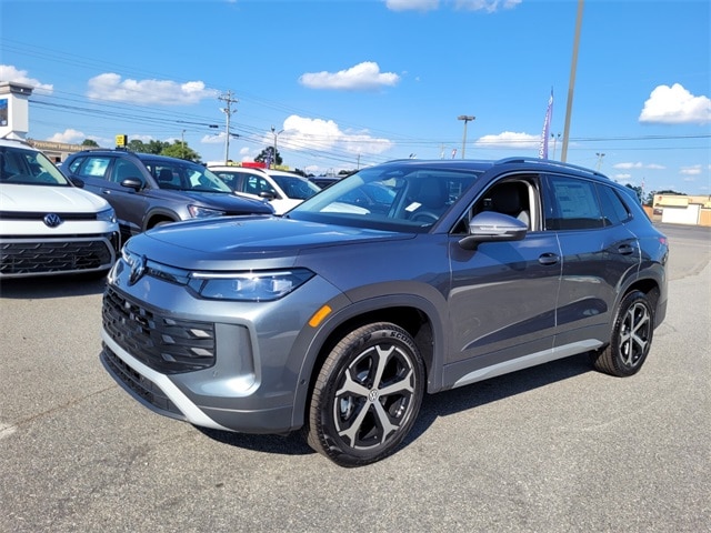 Gray Metallic 2025 Volkswagen Tiguan 2.0T SE AWD 8-Speed Automatic 2.0L TSI DOHC AWD, 4-Wheel Disc Brakes, 4-Wheel Independent Suspension, 7 Speakers, ABS brakes, Air Conditioning, Alloy wheels, AM/FM radio: SiriusXM with 360L, Auto High-beam Headlights, Auto-dimming Rear-View mirror, Automatic temperature control, Brake assist, Bumpers: body-color, Compass, Delay-off headlights, Driver door bin, Driver vanity mirror, Dual front impact airbags, Dual front side impact airbags, Electronic Stability Control, Emergency communication system: VW Car-Net Safe & Secure 5-year, Exterior Parking Camera Rear, Four wheel independent suspension, Front anti-roll bar, Front Bucket Seats, Front Center Armrest, Front dual zone A/C, Front reading lights, Fully automatic headlights, Heated door mirrors, Heated Front Seats, Heated front seats, Illuminated entry, Knee airbag, Leather Shift Knob, Low tire pressure warning, Occupant sensing airbag, Outside temperature display, Overhead airbag, Overhead console, Panic alarm, Passenger door bin, Passenger vanity mirror, Perforated V-Tex Leatherette Seating Surfaces, Power door mirrors, Power driver seat, Power Liftgate, Power steering, Power windows, Radio data system, Radio: MIB4 Composition Media Touchscreen AM/FM, Rain sensing wipers, Rear anti-roll bar, Rear reading lights, Rear seat center armrest, Rear side impact airbag, Rear window defroster, Rear window wiper, Remote keyless entry, Security system, Speed control, Speed-sensing steering, Split folding rear seat, Spoiler, Steering wheel mounted audio controls, Tachometer, Telescoping steering wheel, Tilt steering wheel, Traction control, Trip computer, Turn signal indicator mirrors, Variably intermittent wipers, Wheels: 19" 2-Tone Machined Alloy, AWD.