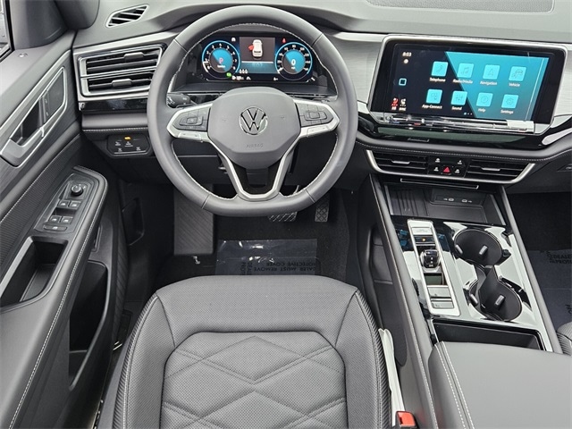 Gray 2026 Volkswagen Atlas Cross Sport 2.0T SE w/Technology AWD 8-Speed Automatic with Tiptronic 2.0L TSI 4-Wheel Disc Brakes, 4-Wheel Independent Suspension, 6 Speakers, ABS brakes, Air Conditioning, Alloy wheels, AM/FM radio: SiriusXM with 360L, Auto High-beam Headlights, Auto-dimming Rear-View mirror, Automatic temperature control, Brake assist, Bumpers: body-color, Compass, Delay-off headlights, Driver door bin, Driver vanity mirror, Dual front impact airbags, Dual front side impact airbags, Electronic Stability Control, Exterior Parking Camera Rear, Four wheel independent suspension, Front anti-roll bar, Front Bucket Seats, Front Center Armrest, Front dual zone A/C, Front fog lights, Front reading lights, Fully automatic headlights, Heated door mirrors, Heated front seats, Heated steering wheel, Illuminated entry, Low tire pressure warning, Occupant sensing airbag, Outside temperature display, Overhead airbag, Overhead console, Panic alarm, Passenger door bin, Passenger vanity mirror, Perforated V-Tex Leatherette Seating Surfaces, Power door mirrors, Power driver seat, Power Liftgate, Power steering, Power windows, Radio data system, Rain sensing wipers, Rear anti-roll bar, Rear reading lights, Rear seat center armrest, Rear window defroster, Rear window wiper, Remote keyless entry, Security system, Speed control, Speed-sensing steering, Split folding rear seat, Spoiler, Steering wheel mounted audio controls, Tachometer, Telescoping steering wheel, Tilt steering wheel, Traction control, Trip computer, Turn signal indicator mirrors, Variably intermittent wipers, Ventilated front seats, Wheels: 20" 5-Spoke 2-Tone Machined Alloy.