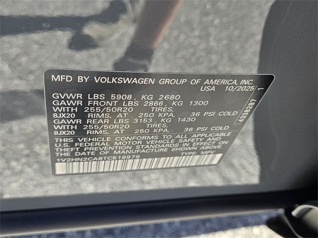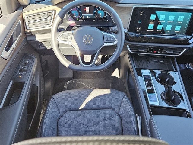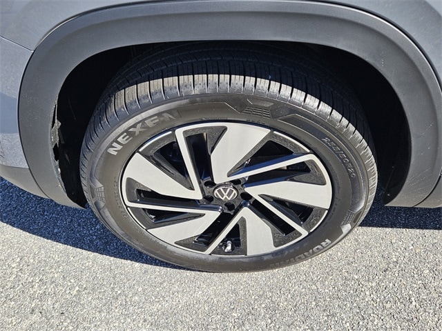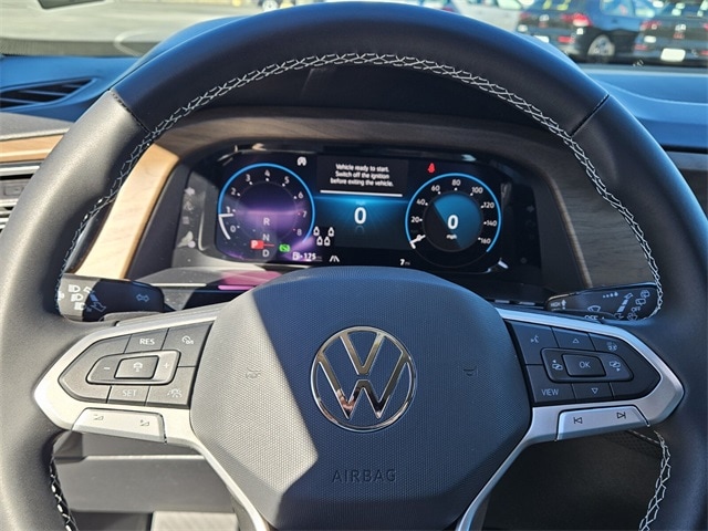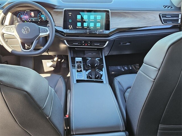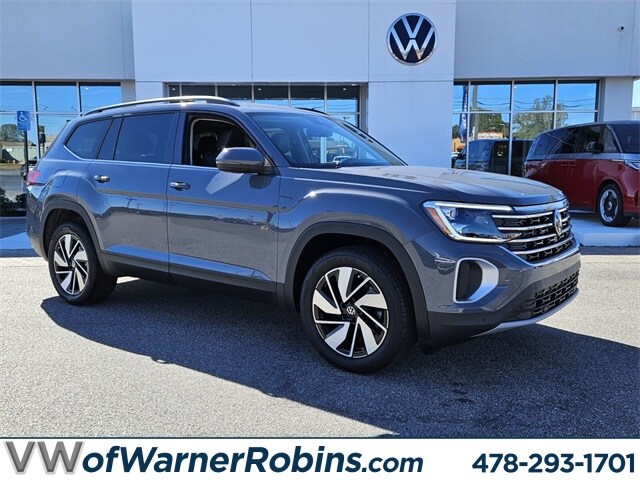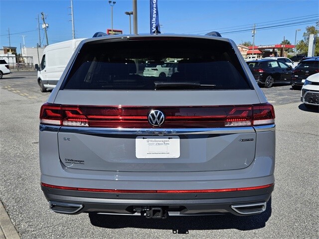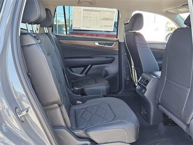 Gray 2026 Volkswagen Atlas 2.0T SE w/Technology AWD 8-Speed Automatic with Tiptronic 2.0L TSI 3rd row seats: split-bench, 4-Wheel Disc Brakes, 6 Speakers, ABS brakes, Air Conditioning, Alloy wheels, AM/FM radio: SiriusXM with 360L, Auto High-beam Headlights, Auto-dimming Rear-View mirror, Automatic temperature control, Brake assist, Bumpers: body-color, Compass, Delay-off headlights, Driver door bin, Driver vanity mirror, Dual front impact airbags, Dual front side impact airbags, Electronic Stability Control, Exterior Parking Camera Rear, Four wheel independent suspension, Front anti-roll bar, Front Bucket Seats, Front Center Armrest, Front dual zone A/C, Front fog lights, Front reading lights, Fully automatic headlights, Heated & Actively Ventilated Front Bucket Seats, Heated door mirrors, Heated front seats, Heated steering wheel, Illuminated entry, Low tire pressure warning, Occupant sensing airbag, Outside temperature display, Overhead airbag, Overhead console, Panic alarm, Passenger door bin, Passenger vanity mirror, Perforated V-Tex Leatherette Seating Surfaces, Power door mirrors, Power driver seat, Power Liftgate, Power steering, Power windows, Radio data system, Radio: MIB3 Composition Media, Rain sensing wipers, Rear air conditioning, Rear anti-roll bar, Rear reading lights, Rear seat center armrest, Rear window defroster, Rear window wiper, Remote keyless entry, Security system, Speed control, Speed-sensing steering, Split folding rear seat, Spoiler, Steering wheel mounted audio controls, Tachometer, Telescoping steering wheel, Tilt steering wheel, Traction control, Trip computer, Turn signal indicator mirrors, Variably intermittent wipers, Ventilated front seats, Wheels: 20" 2-Tone Machined Alloy.