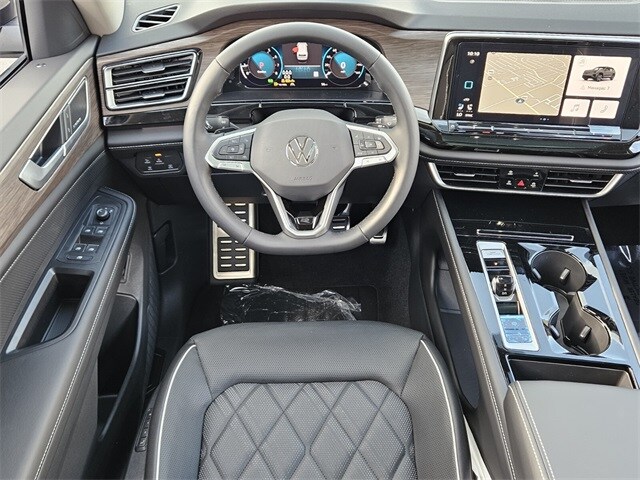 Pearl 2026 Volkswagen Atlas 2.0T SEL Premium R-Line AWD 8-Speed Automatic with Tiptronic 2.0L TSI 10 Speakers, 3rd row seats: split-bench, 4-Wheel Disc Brakes, ABS brakes, Air Conditioning, Alloy wheels, AM/FM radio: SiriusXM with 360L, Auto High-beam Headlights, Auto-dimming Rear-View mirror, Automatic temperature control, Brake assist, Bumpers: body-color, Compass, Delay-off headlights, Driver door bin, Driver vanity mirror, Dual front impact airbags, Dual front side impact airbags, Electronic Stability Control, Emergency communication system: VW Car-Net Safe & Secure 5-year, Exterior Parking Camera Rear, Four wheel independent suspension, Front anti-roll bar, Front Bucket Seats, Front Center Armrest, Front dual zone A/C, Front fog lights, Front reading lights, Fully automatic headlights, harman/kardon® Speakers, Heads-Up Display, Heated & Actively Ventilated Front Bucket Seats, Heated door mirrors, Heated front seats, Heated rear seats, Heated steering wheel, Illuminated entry, Leather steering wheel, Low tire pressure warning, Memory seat, Navigation System, Occupant sensing airbag, Outside temperature display, Overhead airbag, Overhead console, Panic alarm, Passenger door bin, Passenger vanity mirror, Perforated Vienna Leather Seating Surfaces, Power door mirrors, Power driver seat, Power Liftgate, Power moonroof: Panoramic, Power passenger seat, Power steering, Power windows, Radio data system, Radio: MIB3 Discover Pro w/Navigation, Rain sensing wipers, Rear air conditioning, Rear anti-roll bar, Rear audio controls, Rear reading lights, Rear seat center armrest, Rear window defroster, Rear window wiper, Remote keyless entry, Security system, Speed control, Speed-sensing steering, Split folding rear seat, Spoiler, Sport steering wheel, Steering wheel mounted audio controls, Tachometer, Telescoping steering wheel, Tilt steering wheel, Traction control, Trip computer, Turn signal indicator mirrors, Variably intermittent wipers, Ventilated front seats, Wheels: 21" 2-Tone Machined Alloy.
