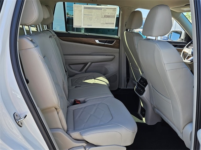 Opal 2026 Volkswagen Atlas 2.0T SE w/Technology FWD 8-Speed Automatic with Tiptronic 2.0L TSI 3rd row seats: split-bench, 4-Wheel Disc Brakes, 6 Speakers, ABS brakes, Air Conditioning, Alloy wheels, AM/FM radio: SiriusXM with 360L, Auto High-beam Headlights, Auto-dimming Rear-View mirror, Automatic temperature control, Brake assist, Bumpers: body-color, Compass, Delay-off headlights, Driver door bin, Driver vanity mirror, Dual front impact airbags, Dual front side impact airbags, Electronic Stability Control, Emergency communication system, Exterior Parking Camera Rear, Four wheel independent suspension, Four-wheel Independent Suspension, Front anti-roll bar, Front Bucket Seats, Front Center Armrest, Front dual zone A/C, Front fog lights, Front reading lights, Fully automatic headlights, Garage door transmitter: HomeLink Connect, Heated & Actively Ventilated Front Bucket Seats, Heated door mirrors, Heated front seats, Heated steering wheel, Illuminated entry, Low tire pressure warning, Occupant sensing airbag, Outside temperature display, Overhead airbag, Overhead console, Panic alarm, Passenger door bin, Passenger vanity mirror, Perforated V-Tex Leatherette Seating Surfaces, Power door mirrors, Power driver seat, Power Liftgate, Power steering, Power windows, Radio data system, Radio: MIB3 Composition Media, Rain sensing wipers, Rear air conditioning, Rear anti-roll bar, Rear reading lights, Rear seat center armrest, Rear window defroster, Rear window wiper, Remote keyless entry, Security system, Speed control, Speed-sensing steering, Split folding rear seat, Spoiler, Steering wheel mounted audio controls, Tachometer, Telescoping steering wheel, Tilt steering wheel, Traction control, Trip computer, Turn signal indicator mirrors, Variably intermittent wipers, Ventilated front seats, Wheels: 20" 2-Tone Machined Alloy.