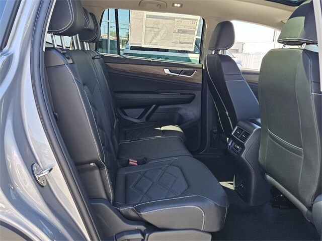 Mist 2026 Volkswagen Atlas 2.0T SE w/Technology FWD 8-Speed Automatic with Tiptronic 2.0L TSI 3rd row seats: split-bench, 4-Wheel Disc Brakes, 6 Speakers, ABS brakes, Air Conditioning, Alloy wheels, AM/FM radio: SiriusXM with 360L, Auto High-beam Headlights, Auto-dimming Rear-View mirror, Automatic temperature control, Brake assist, Bumpers: body-color, Compass, Delay-off headlights, Driver door bin, Driver vanity mirror, Dual front impact airbags, Dual front side impact airbags, Electronic Stability Control, Emergency communication system, Exterior Parking Camera Rear, Four wheel independent suspension, Four-wheel Independent Suspension, Front anti-roll bar, Front Bucket Seats, Front Center Armrest, Front dual zone A/C, Front fog lights, Front reading lights, Fully automatic headlights, Garage door transmitter: HomeLink Connect, Heated & Actively Ventilated Front Bucket Seats, Heated door mirrors, Heated front seats, Heated steering wheel, Illuminated entry, Low tire pressure warning, Occupant sensing airbag, Outside temperature display, Overhead airbag, Overhead console, Panic alarm, Passenger door bin, Passenger vanity mirror, Perforated V-Tex Leatherette Seating Surfaces, Power door mirrors, Power driver seat, Power Liftgate, Power steering, Power windows, Radio data system, Radio: MIB3 Composition Media, Rain sensing wipers, Rear air conditioning, Rear anti-roll bar, Rear reading lights, Rear seat center armrest, Rear window defroster, Rear window wiper, Remote keyless entry, Security system, Speed control, Speed-sensing steering, Split folding rear seat, Spoiler, Steering wheel mounted audio controls, Tachometer, Telescoping steering wheel, Tilt steering wheel, Traction control, Trip computer, Turn signal indicator mirrors, Variably intermittent wipers, Ventilated front seats, Wheels: 20" 2-Tone Machined Alloy.