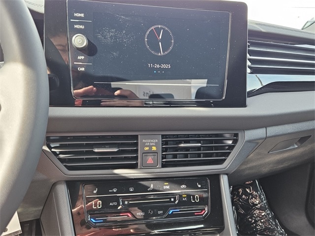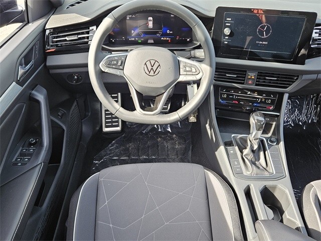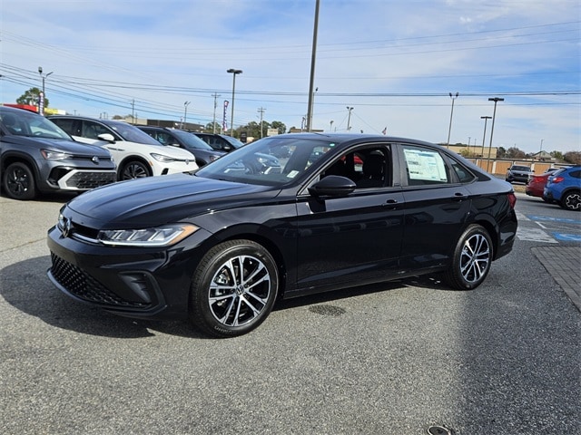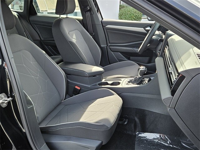 Pearl 2026 Volkswagen Jetta 1.5T Sport FWD 8-Speed Automatic with Tiptronic 1.5L I-4 DI DOHC Turbocharged Black Cloth, 4 Speakers, 4-Wheel Disc Brakes, ABS brakes, Active Blind Spot Monitor, Air Conditioning, Alloy wheels, Auto-dimming Rear-View mirror, Automatic temperature control, Brake assist, Bumpers: body-color, Cloth Seat Trim, Delay-off headlights, Driver door bin, Driver vanity mirror, Dual front impact airbags, Dual front side impact airbags, Electronic Stability Control, Emergency communication system: VW Car-Net Safe & Secure 5-year, Exterior Parking Camera Rear, Front anti-roll bar, Front Bucket Seats, Front Center Armrest, Front dual zone A/C, Front wheel independent suspension, Fully automatic headlights, Heated door mirrors, Heated Front Seats, Heated front seats, Illuminated entry, Leather Shift Knob, Leather steering wheel, Low tire pressure warning, Occupant sensing airbag, Outside temperature display, Overhead airbag, Overhead console, Panic alarm, Passenger door bin, Passenger vanity mirror, Power door mirrors, Power steering, Power windows, Radio data system, Rain sensing wipers, Rear anti-roll bar, Rear reading lights, Rear seat center armrest, Rear window defroster, Remote keyless entry, Speed control, Speed-sensing steering, Split folding rear seat, Steering wheel mounted audio controls, Tachometer, Telescoping steering wheel, Tilt steering wheel, Traction control, Trip computer, Variably intermittent wipers, Wheels: 17" 2-Tone Machined Alloy, Black Cloth.