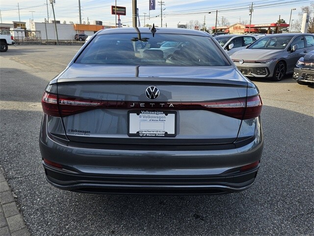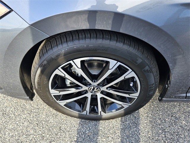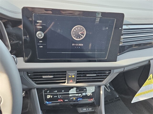 Platinum Gray 2026 Volkswagen Jetta 1.5T Sport FWD 8-Speed Automatic with Tiptronic 1.5L I-4 DI DOHC Turbocharged Black Cloth, 4 Speakers, 4-Wheel Disc Brakes, ABS brakes, Active Blind Spot Monitor, Air Conditioning, Alloy wheels, Auto-dimming Rear-View mirror, Automatic temperature control, Brake assist, Bumpers: body-color, Cloth Seat Trim, Delay-off headlights, Driver door bin, Driver vanity mirror, Dual front impact airbags, Dual front side impact airbags, Electronic Stability Control, Emergency communication system: VW Car-Net Safe & Secure 5-year, Exterior Parking Camera Rear, Front anti-roll bar, Front Bucket Seats, Front Center Armrest, Front dual zone A/C, Front wheel independent suspension, Fully automatic headlights, Heated door mirrors, Heated Front Seats, Heated front seats, Illuminated entry, Leather Shift Knob, Leather steering wheel, Low tire pressure warning, Occupant sensing airbag, Outside temperature display, Overhead airbag, Overhead console, Panic alarm, Passenger door bin, Passenger vanity mirror, Power door mirrors, Power steering, Power windows, Radio data system, Radio: MIB3 Composition Color with 8" Touchscreen, Rain sensing wipers, Rear anti-roll bar, Rear reading lights, Rear seat center armrest, Rear window defroster, Remote keyless entry, Speed control, Speed-sensing steering, Split folding rear seat, Steering wheel mounted audio controls, Tachometer, Telescoping steering wheel, Tilt steering wheel, Traction control, Trip computer, Variably intermittent wipers, Wheels: 17" 2-Tone Machined Alloy, Black Cloth.