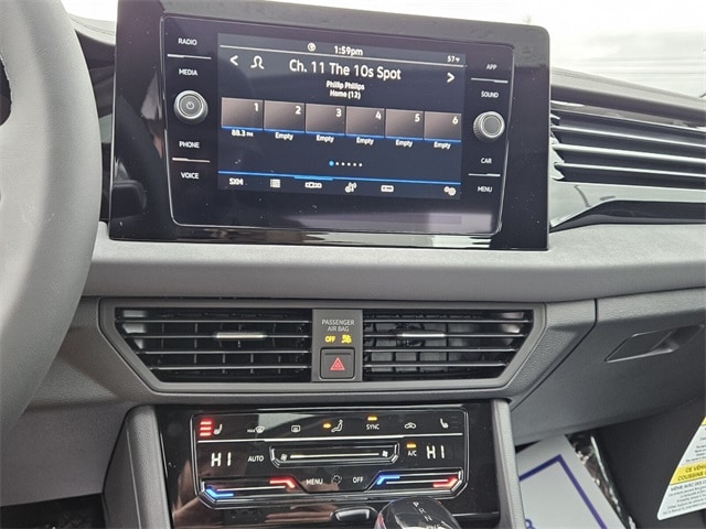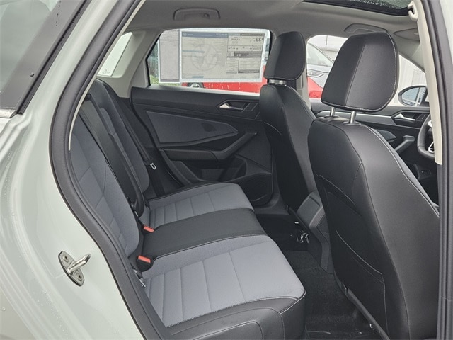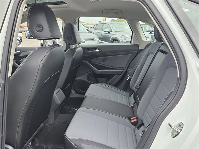 Opal 2026 Volkswagen Jetta 1.5T SE FWD 8-Speed Automatic with Tiptronic 1.5L I-4 DI DOHC Turbocharged 4-Wheel Disc Brakes, 6 Speakers, ABS brakes, Active Blind Spot Monitor, Air Conditioning, Alloy wheels, AM/FM radio: SiriusXM with 360L, Auto-dimming Rear-View mirror, Automatic temperature control, Brake assist, Bumpers: body-color, Delay-off headlights, Driver door bin, Driver vanity mirror, Dual front impact airbags, Dual front side impact airbags, Electronic Stability Control, Emergency communication system: VW Car-Net Safe & Secure 5-year, Exterior Parking Camera Rear, Front anti-roll bar, Front Bucket Seats, Front Center Armrest, Front dual zone A/C, Front wheel independent suspension, Fully automatic headlights, Heated door mirrors, Heated Front Seats, Heated front seats, Illuminated entry, Leather Shift Knob, Leather steering wheel, Low tire pressure warning, Occupant sensing airbag, Outside temperature display, Overhead airbag, Overhead console, Panic alarm, Passenger door bin, Passenger vanity mirror, Power door mirrors, Power driver seat, Power moonroof: Panoramic, Power steering, Power windows, Radio data system, Rain sensing wipers, Rear anti-roll bar, Rear reading lights, Rear seat center armrest, Rear window defroster, Remote keyless entry, Speed control, Speed-sensing steering, Split folding rear seat, Steering wheel mounted audio controls, Tachometer, Telescoping steering wheel, Tilt steering wheel, Traction control, Trip computer, Variably intermittent wipers, Wheels: 17" Twin 5-Spoke 2-Tone Machined Alloy.