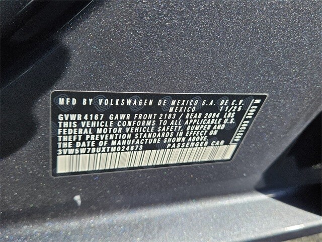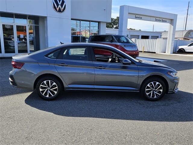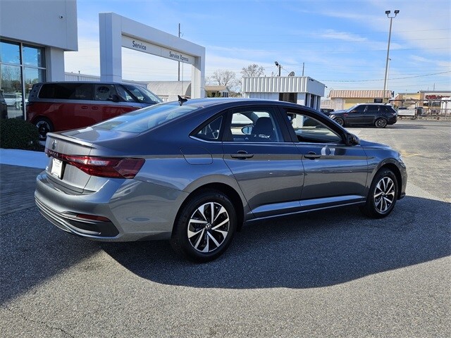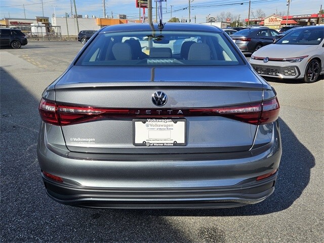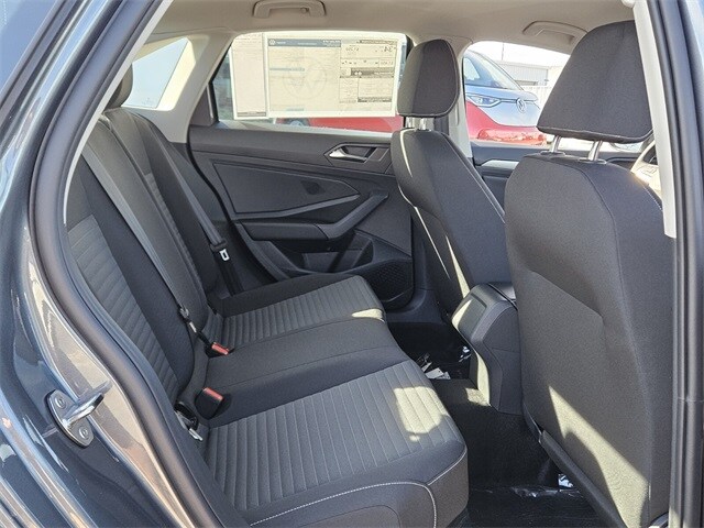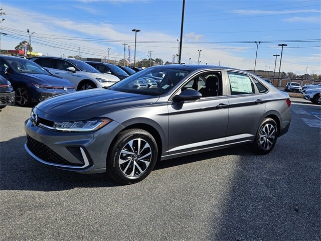 Platinum Gray 2026 Volkswagen Jetta 1.5T S FWD 8-Speed Automatic with Tiptronic 1.5L I-4 DI DOHC Turbocharged Black Cloth, 4 Speakers, 4-Wheel Disc Brakes, ABS brakes, Active Blind Spot Monitor, Air Conditioning, Alloy wheels, Auto-dimming Rear-View mirror, Automatic temperature control, Brake assist, Bumpers: body-color, Cloth Seat Trim, Delay-off headlights, Driver door bin, Driver vanity mirror, Dual front impact airbags, Dual front side impact airbags, Electronic Stability Control, Emergency communication system: VW Car-Net Safe & Secure 5-year, Exterior Parking Camera Rear, Front anti-roll bar, Front Bucket Seats, Front Center Armrest, Front dual zone A/C, Front Seats, Front wheel independent suspension, Fully automatic headlights, Heated door mirrors, Illuminated entry, Leather Shift Knob, Leather steering wheel, Low tire pressure warning, Occupant sensing airbag, Outside temperature display, Overhead airbag, Overhead console, Panic alarm, Passenger door bin, Passenger vanity mirror, Power door mirrors, Power steering, Power windows, Radio data system, Radio: MIB3 Composition Color with 8" Touchscreen, Rain sensing wipers, Rear anti-roll bar, Rear reading lights, Rear window defroster, Remote keyless entry, Speed control, Speed-sensing steering, Split folding rear seat, Steering wheel mounted audio controls, Tachometer, Telescoping steering wheel, Tilt steering wheel, Traction control, Trip computer, Variably intermittent wipers, Wheels: 16" 2-Tone Machined Alloy, Black Cloth.