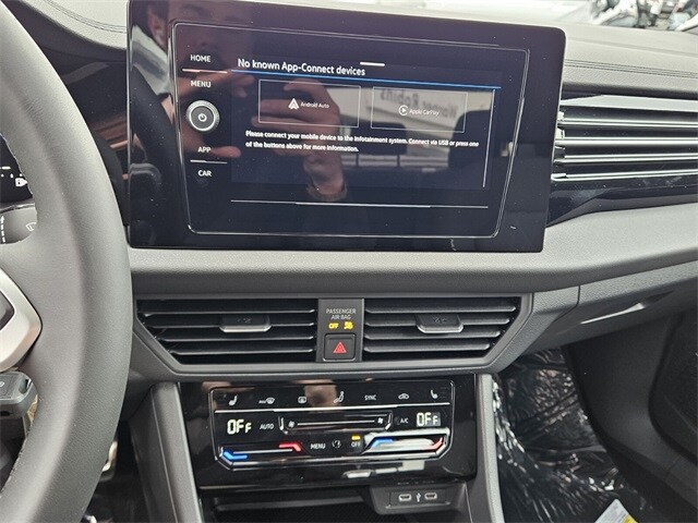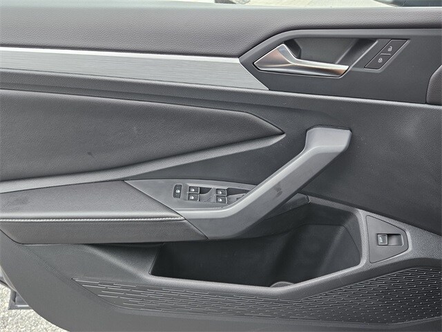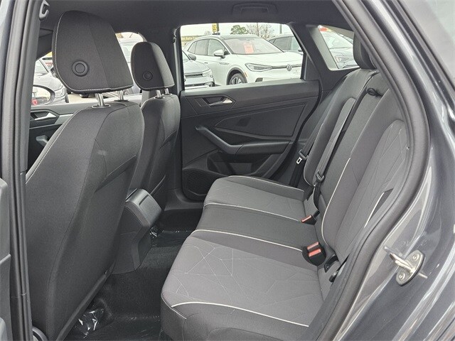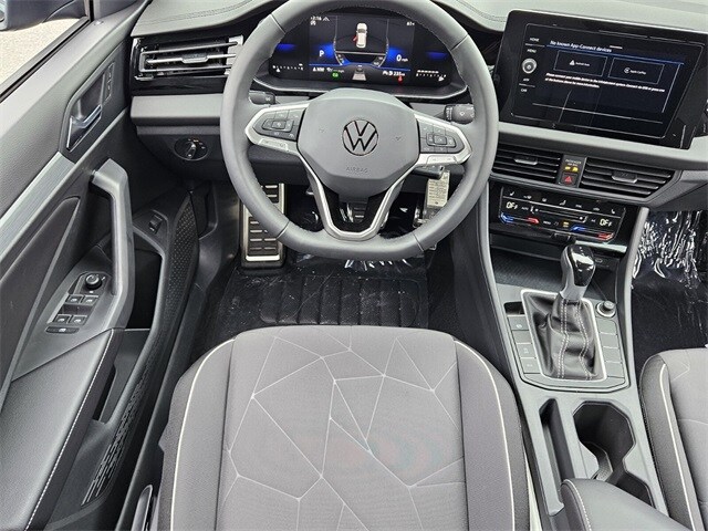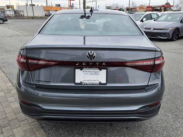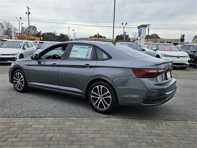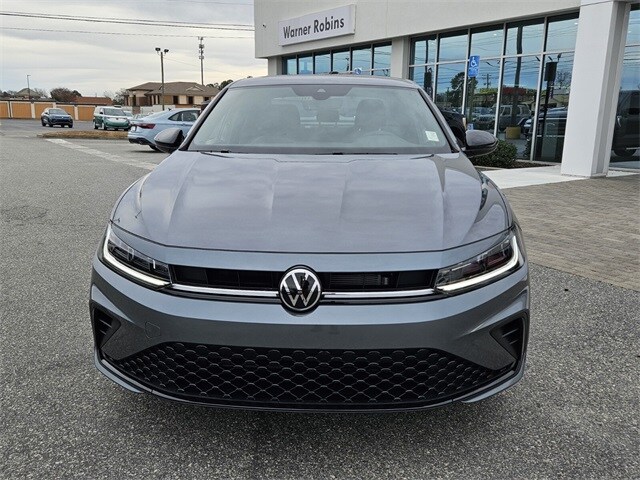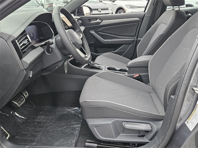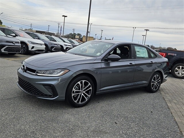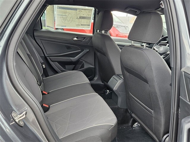 Platinum Gray 2026 Volkswagen Jetta 1.5T Sport FWD 8-Speed Automatic with Tiptronic 1.5L I-4 DI DOHC Turbocharged Black Cloth, 4 Speakers, 4-Wheel Disc Brakes, ABS brakes, Active Blind Spot Monitor, Air Conditioning, Alloy wheels, Auto-dimming Rear-View mirror, Automatic temperature control, Brake assist, Bumpers: body-color, Cloth Seat Trim, Delay-off headlights, Driver door bin, Driver vanity mirror, Dual front impact airbags, Dual front side impact airbags, Electronic Stability Control, Emergency communication system: VW Car-Net Safe & Secure 5-year, Exterior Parking Camera Rear, Front anti-roll bar, Front Bucket Seats, Front Center Armrest, Front dual zone A/C, Front wheel independent suspension, Fully automatic headlights, Heated door mirrors, Heated Front Seats, Heated front seats, Illuminated entry, Leather Shift Knob, Leather steering wheel, Low tire pressure warning, Occupant sensing airbag, Outside temperature display, Overhead airbag, Overhead console, Panic alarm, Passenger door bin, Passenger vanity mirror, Power door mirrors, Power steering, Power windows, Radio data system, Radio: MIB3 Composition Color with 8" Touchscreen, Rain sensing wipers, Rear anti-roll bar, Rear reading lights, Rear seat center armrest, Rear window defroster, Remote keyless entry, Speed control, Speed-sensing steering, Split folding rear seat, Steering wheel mounted audio controls, Tachometer, Telescoping steering wheel, Tilt steering wheel, Traction control, Trip computer, Variably intermittent wipers, Wheels: 17" 2-Tone Machined Alloy, Black Cloth.