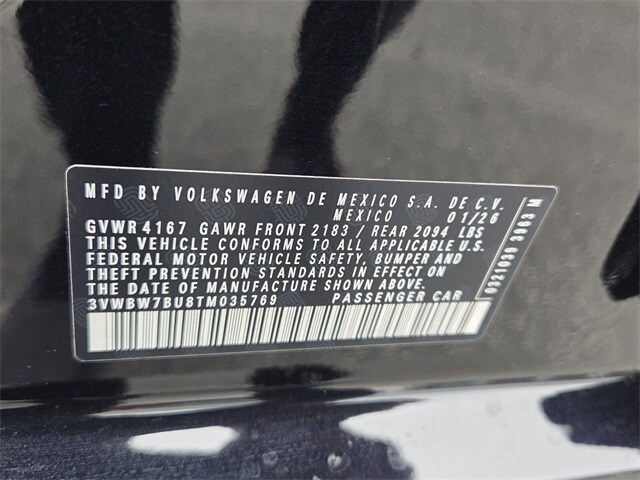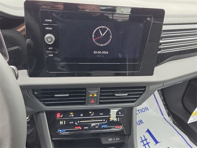 Pearl 2026 Volkswagen Jetta 1.5T Sport FWD 8-Speed Automatic with Tiptronic 1.5L I-4 DI DOHC Turbocharged Black Cloth, 4 Speakers, 4-Wheel Disc Brakes, ABS brakes, Active Blind Spot Monitor, Air Conditioning, Alloy wheels, Auto-dimming Rear-View mirror, Automatic temperature control, Brake assist, Bumpers: body-color, Cloth Seat Trim, Delay-off headlights, Driver door bin, Driver vanity mirror, Dual front impact airbags, Dual front side impact airbags, Electronic Stability Control, Emergency communication system: VW Car-Net Safe & Secure 5-year, Exterior Parking Camera Rear, Front anti-roll bar, Front Bucket Seats, Front Center Armrest, Front dual zone A/C, Front wheel independent suspension, Fully automatic headlights, Heated door mirrors, Heated Front Seats, Heated front seats, Illuminated entry, Leather Shift Knob, Leather steering wheel, Low tire pressure warning, Occupant sensing airbag, Outside temperature display, Overhead airbag, Overhead console, Panic alarm, Passenger door bin, Passenger vanity mirror, Power door mirrors, Power steering, Power windows, Radio data system, Radio: MIB3 Composition Color with 8" Touchscreen, Rain sensing wipers, Rear anti-roll bar, Rear reading lights, Rear seat center armrest, Rear window defroster, Remote keyless entry, Speed control, Speed-sensing steering, Split folding rear seat, Steering wheel mounted audio controls, Tachometer, Telescoping steering wheel, Tilt steering wheel, Traction control, Trip computer, Variably intermittent wipers, Wheels: 17" 2-Tone Machined Alloy, Black Cloth.