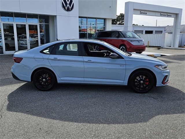 2026 Volkswagen Jetta GLI 2.0T Autobahn FWD 7-Speed DSG Automatic with Tiptronic 2.0L TSI DOHC 4-Wheel Disc Brakes, 8 Speakers, ABS brakes, Active Blind Spot Monitor, Air Conditioning, Alloy wheels, AM/FM radio: SiriusXM with 360L, Auto High-beam Headlights, Auto-dimming Rear-View mirror, Automatic temperature control, Brake assist, Bumpers: body-color, Delay-off headlights, Driver door bin, Driver vanity mirror, Dual front impact airbags, Dual front side impact airbags, Electronic Stability Control, Emergency communication system: VW Car-Net Safe & Secure 5-year, Exterior Parking Camera Rear, Four wheel independent suspension, Front anti-roll bar, Front Bucket Seats, Front Center Armrest, Front dual zone A/C, Front reading lights, Fully automatic headlights, Heated door mirrors, Heated front seats, Heated steering wheel, Illuminated entry, Leather Shift Knob, Leather steering wheel, Low tire pressure warning, Memory seat, Occupant sensing airbag, Outside temperature display, Overhead airbag, Overhead console, Panic alarm, Passenger door bin, Passenger vanity mirror, Perforated Vienna Leather Seating Surfaces, Power door mirrors, Power driver seat, Power moonroof, Power steering, Power windows, Radio data system, Rain sensing wipers, Rear anti-roll bar, Rear reading lights, Rear seat center armrest, Rear window defroster, Remote keyless entry, Security system, Speed control, Speed-sensing steering, Split folding rear seat, Sport steering wheel, Steering wheel mounted audio controls, Tachometer, Telescoping steering wheel, Tilt steering wheel, Traction control, Trip computer, Turn signal indicator mirrors, Variably intermittent wipers, Ventilated front seats, Wheels: 18" Two-Tone Machined Alloy.
