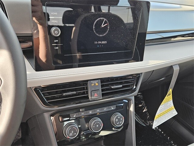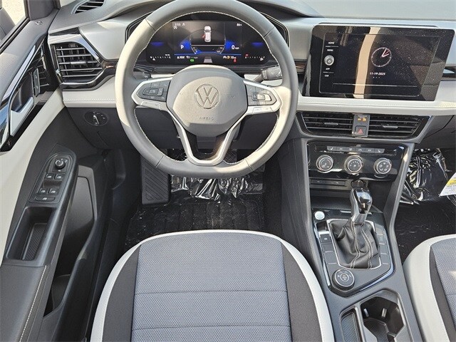 Pearl 2026 Volkswagen Taos 1.5T S AWD 8-Speed Automatic with Tiptronic 1.5L I4 Turbocharged DOHC 16V LEV3-SULEV30 174hp 4-Wheel Disc Brakes, 6 Speakers, ABS brakes, Active Blind Spot Monitor, Air Conditioning, Alloy wheels, AM/FM radio, Auto High-beam Headlights, Brake assist, Bumpers: body-color, Cloth Seating Surfaces, Compass, Delay-off headlights, Driver door bin, Driver vanity mirror, Dual front impact airbags, Dual front side impact airbags, Electronic Stability Control, Emergency communication system: VW Car-Net Safe & Secure 5-year, Exterior Parking Camera Rear, Four wheel independent suspension, Front anti-roll bar, Front Bucket Seats, Front Center Armrest, Front reading lights, Front Strut Rear Multi-Link Suspension, Fully automatic headlights, Heated door mirrors, Heated Front Bucket Seats, Heated front seats, Heated steering wheel, Illuminated entry, Leather Shift Knob, Low tire pressure warning, Occupant sensing airbag, Outside temperature display, Overhead airbag, Overhead console, Panic alarm, Passenger door bin, Passenger vanity mirror, Power door mirrors, Power steering, Power windows, Radio data system, Radio: MIB3 Composition Color AM/FM, Rain sensing wipers, Rear anti-roll bar, Rear seat center armrest, Rear window defroster, Rear window wiper, Remote keyless entry, Speed control, Speed-sensing steering, Split folding rear seat, Spoiler, Steering wheel mounted audio controls, Tachometer, Telescoping steering wheel, Tilt steering wheel, Traction control, Trip computer, Variably intermittent wipers, Wheels: 18" 2-Tone Machined Alloy.