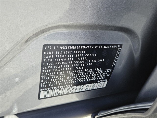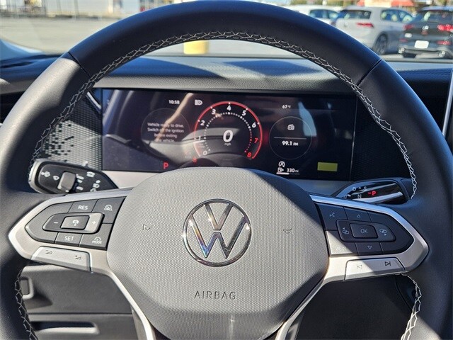 Silver 2026 Volkswagen Tiguan 2.0T SE FWD 8-Speed Automatic 2.0L TSI DOHC ABS brakes, Active Cruise Control, Alloy wheels, Compass, Electronic Stability Control, Emergency communication system, Front dual zone A/C, Heated door mirrors, Heated Front Seats, Heated front seats, Illuminated entry, Low tire pressure warning, Power Liftgate, Remote keyless entry, Traction control, 4-Wheel Disc Brakes, 4-Wheel Independent Suspension, 7 Speakers, Air Conditioning, AM/FM radio: SiriusXM with 360L, Auto High-beam Headlights, Auto-dimming Rear-View mirror, Automatic temperature control, Brake assist, Bumpers: body-color, Delay-off headlights, Driver door bin, Driver vanity mirror, Dual front impact airbags, Dual front side impact airbags, Exterior Parking Camera Rear, Four wheel independent suspension, Front anti-roll bar, Front Bucket Seats, Front Center Armrest, Front reading lights, Fully automatic headlights, Knee airbag, Leather Shift Knob, Occupant sensing airbag, Outside temperature display, Overhead airbag, Overhead console, Panic alarm, Passenger door bin, Passenger vanity mirror, Perforated V-Tex Leatherette Seating Surfaces, Power door mirrors, Power driver seat, Power steering, Power windows, Radio data system, Radio: MIB4 Composition Media Touchscreen with AM/FM, Rain sensing wipers, Rear anti-roll bar, Rear reading lights, Rear seat center armrest, Rear side impact airbag, Rear window defroster, Rear window wiper, Security system, Speed control, Speed-sensing steering, Split folding rear seat, Spoiler, Steering wheel mounted audio controls, Tachometer, Telescoping steering wheel, Tilt steering wheel, Trip computer, Turn signal indicator mirrors, Variably intermittent wipers, Wheels: 19" 2-Tone Machined Alloy, ABS brakes, Active Cruise Control, Alloy wheels, Compass, Electronic Stability Control, Emergency communication system, Front dual zone A/C, Heated door mirrors, Heated Front Seats, Heated front seats, Illuminated entry, Low tire pressure warning, Power Liftgate, Remote keyless entry, Traction control.