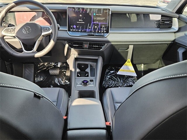 Pearl 2026 Volkswagen Tiguan 2.0T SE FWD 8-Speed Automatic 2.0L TSI DOHC 4-Wheel Disc Brakes, 4-Wheel Independent Suspension, 7 Speakers, ABS brakes, Air Conditioning, Alloy wheels, AM/FM radio: SiriusXM with 360L, Auto High-beam Headlights, Auto-dimming Rear-View mirror, Automatic temperature control, Brake assist, Bumpers: body-color, Compass, Delay-off headlights, Driver door bin, Driver vanity mirror, Dual front impact airbags, Dual front side impact airbags, Electronic Stability Control, Emergency communication system, Exterior Parking Camera Rear, Four wheel independent suspension, Front anti-roll bar, Front Bucket Seats, Front Center Armrest, Front dual zone A/C, Front reading lights, Fully automatic headlights, Heated door mirrors, Heated Front Seats, Heated front seats, Illuminated entry, Knee airbag, Leather Shift Knob, Low tire pressure warning, Occupant sensing airbag, Outside temperature display, Overhead airbag, Overhead console, Panic alarm, Passenger door bin, Passenger vanity mirror, Perforated V-Tex Leatherette Seating Surfaces, Power door mirrors, Power driver seat, Power Liftgate, Power steering, Power windows, Radio data system, Radio: MIB4 Composition Media Touchscreen with AM/FM, Rain sensing wipers, Rear anti-roll bar, Rear reading lights, Rear seat center armrest, Rear side impact airbag, Rear window defroster, Rear window wiper, Remote keyless entry, Security system, Speed control, Speed-sensing steering, Split folding rear seat, Spoiler, Steering wheel mounted audio controls, Tachometer, Telescoping steering wheel, Tilt steering wheel, Traction control, Trip computer, Turn signal indicator mirrors, Variably intermittent wipers, Wheels: 19" 2-Tone Machined Alloy.