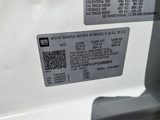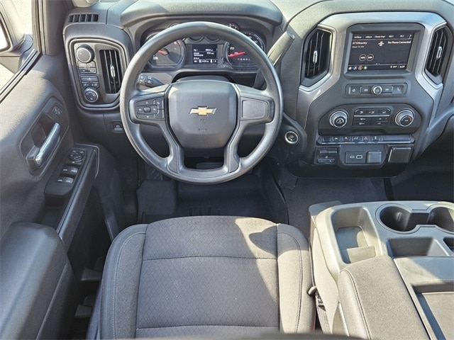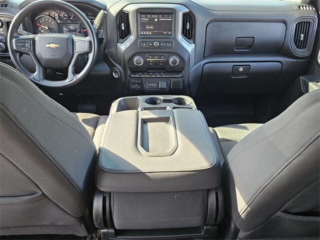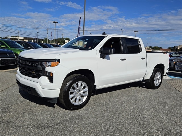 Summit White 2023 Chevrolet Silverado 1500 Custom 4WD 8-Speed Automatic 2.7L Turbo This Silverado 1500 is equipped with. 8-Speed Automatic, 4WD, Black Cloth, 10-Way Power Driver Seat w/Lumbar, 120-Volt Bed Mounted Power Outlet, 120-Volt Instrument Panel Power Outlet, 3.42 Rear Axle Ratio, 3.5" Monochromatic Display Driver Info Center, 4-Wheel Disc Brakes, 40/20/40 Front Split-Bench Seat, 6 Speakers, 6-Speaker Audio System, ABS brakes, Air Conditioning, Alloy wheels, AM/FM radio: SiriusXM, Apple CarPlay/Android Auto, Auto High-beam Headlights, Auto-Locking Rear Differential, Automatic Emergency Braking, Bluetooth® For Phone, Brake assist, Bumpers: body-color, Chevrolet Connected Access Capable, Chevytec Spray-On Black Bedliner, Cloth Seat Trim, Color-Keyed Carpeting Floor Covering, Compass, Custom Convenience Package, Custom Value Package, Deep-Tinted Glass, Delay-off headlights, Driver door bin, Driver vanity mirror, Dual front impact airbags, Dual front side impact airbags, Dual Rear USB Ports (Charge Only), Electric Rear-Window Defogger, Electrical Steering Column Lock, Electronic Cruise Control, Electronic Stability Control, EZ Lift Power Lock & Release Tailgate, Following Distance Indicator, Forward Collision Alert, Front anti-roll bar, Front Black Bowtie Emblem (LPO), Front Center Armrest w/Storage, Front Frame-Mounted Black Recovery Hooks, Front Pedestrian Braking, Front reading lights, Front Rubberized Vinyl Floor Mats, Front wheel independent suspension, Fully automatic headlights, HD Rear Vision Camera, Heated door mirrors, High Capacity Suspension Package, Hitch Guidance, Illuminated entry, Integrated Trailer Brake Controller, IntelliBeam Automatic High Beam On/Off, Lane Keep Assist w/Lane Departure Warning, LED Cargo Area Lighting, Low tire pressure warning, Manual Tilt Wheel Steering Column, Not Equipped w/Rear USB Ports, Not Equipped w/Steering Column Lock, Occupant sensing airbag, OnStar & Chevrolet Connected Services Capable, Outside temperature display, Overhead airbag, Overhead console, Panic alarm, Passenger door bin, Passenger vanity mirror, Power door mirrors, Power driver seat, Power Front Windows w/Driver Express Up/Down, Power Front Windows w/Passenger Express Down, Power Rear Windows w/Express Down, Power steering, Power windows, Preferred Equipment Group 1CX, Premium audio system: Chevrolet Infotainment 3, Radio data system, Radio: Chevrolet Infotainment 3 System, Rear 60/40 Folding Bench Seat (Folds Up), Rear reading lights, Rear Rubberized-Vinyl Floor Mats, Rear step bumper, Rear Wheelhouse Liners, Rear window defroster, Remote Keyless Entry, Remote keyless entry, Remote Vehicle Starter System, Security system, SiriusXM Radio, Speed control, Speed-sensing steering, Split folding rear seat, Standard Tailgate, Tachometer, Theft Deterrent System (Unauthorized Entry), Tilt steering wheel, Traction control, Trailering Package, Trip computer, Variably intermittent wipers, Voltmeter, Wheels: 20" x 9" Bright Silver Painted Aluminum, Wi-Fi Hot Spot Capable, Wireless Phone Projection, 8-Speed Automatic, 4WD, Black Cloth.