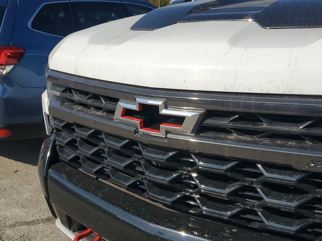 2023 Chevrolet Silverado 1500 ZR2 CARFAX One-Owner. ** Bluetooth, ** Backup Camera, ** Apple Car Play / Android Auto, 10-Speed Automatic, 4WD, Jet Black/Graystone Leather, 10-Way Power Driver Seat w/Lumbar, 10-Way Power Passenger Seat Adjuster w/Lumbar, 12.3" Multicolor Reconfigurable Digital Display, 120-Volt Bed Mounted Power Outlet, 120-Volt Instrument Panel Power Outlet, 15" Diagonal Multicolor Head-Up Display, 170 Amp Alternator, 2 USB Data Ports, 2nd Row Heated Outboard Seats, 3.23 Rear Axle Ratio, 4-Wheel Disc Brakes, 7 Speakers, ABS brakes, Adaptive Cruise Control, Air Conditioning, All-Weather Floor Liner (LPO), Alloy wheels, AM/FM radio: SiriusXM with 360L, Apple CarPlay/Android Auto, Auto High-beam Headlights, Auto-dimming door mirrors, Auto-Dimming Inside Rear-View Mirror, Auto-dimming Rear-View mirror, Auto-Locking Rear Differential, Automatic Emergency Braking, Automatic temperature control, Bed View Camera, Black Name Plates (LPO), Black Tailgate CHEVROLET Lettering (LPO), Bluetooth® For Phone, Brake assist, Chevrolet Connected Access Capable, Chevytec Spray-On Black Bedliner, Color-Keyed Carpeting Floor Covering, Compass, Dark Essentials Package (LPO), Deep-Tinted Glass, Delay-off headlights, Driver door bin, Driver Memory, Driver vanity mirror, Dual Exhaust, Dual front impact airbags, Dual front side impact airbags, Dual Rear USB Ports (Charge Only), Electric Rear-Window Defogger, Electrical Steering Column Lock, Electronic Cruise Control, Electronic Stability Control, Electronic Transmission Range Selector Shifter, EZ Lift Power Lock & Release Tailgate, Floor Mounted Center Console, Following Distance Indicator, Forward Collision Alert, Front Bucket Seats, Front Center Armrest, Front dual zone A/C, Front fog lights, Front LED Fog Lamps, Front License Plate Kit, Front Pedestrian Braking, Front Rainsensing Wipers, Front reading lights, Front wheel independent suspension, Fully automatic headlights, Garage door transmitter, HD Surround Vision, Heated door mirrors, Heated Driver & Front Outboard Passenger Seats, Heated front seats, Heated rear seats, Heated Steering Wheel, Heated steering wheel, Heavy-Duty Air Filter, High Gloss Black Mirror Caps, Hill Descent Control, Hitch Guidance, Hitch Guidance w/Hitch View, Illuminated entry, Integrated Trailer Brake Controller, IntelliBeam Automatic High Beam On/Off, Keyless Open & Start, Lane Keep Assist w/Lane Departure Warning, LED Cargo Area Lighting, Low tire pressure warning, Manual Tilt/Telescoping Steering Column, Memory seat, Navigation System, Not Equipped w/Steering Column Lock, Occupant sensing airbag, OnStar & Chevrolet Connected Services Capable, Outside Heated Power-Adjustable Mirrors, Outside temperature display, Overhead console, Panic alarm, Passenger door bin, Passenger vanity mirror, Perforated Leather Seat Trim, Performance Red Recovery Hooks, Perimeter Lighting, Power door mirrors, Power driver seat, Power Front Passenger Windows w/Express Up/Down, Power Front Windows w/Driver Express Up/Down, Power passenger seat, Power Rear Windows w/Express Down, Power Sliding Rear Window w/Rear Defogger, Power steering, Power Sunroof, Power Tilt & Telescoping Steering Column, Power windows, Preferred Equipment Group 3LT, Premium audio system: Chevrolet Infotainment 3 Premium, Premium Bose 7-Speaker Sound System, Radio data system, Radio: Chevrolet Infotainment 3 Premium System, Rain sensing wipers, Rear Camera Mirror, Rear Cross Traffic Alert-Braking, Rear Park Assist, Rear Parking Sensors, Rear Pedestrian Alert, Rear reading lights, Rear seat center armrest, Rear step bumper, Rear Wheelhouse Liners, Rear window defroster, Remote keyless entry, Remote Vehicle Starter System, Safety Alert Seat, Security system, SiriusXM w/360L, Speed control, Speed-sensing steering, Split folding rear seat, Standard Tailgate, Steering Wheel Audio Controls, Steering wheel mounted audio controls, Tachometer, Technology Package, Telescoping steering wheel, Theft Deterrent System (Una