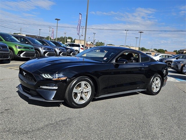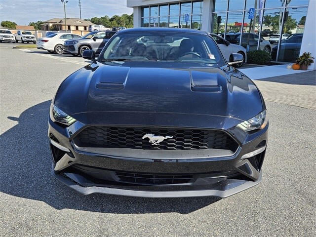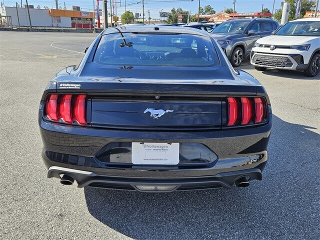 Shadow Black 2020 Ford Mustang EcoBoost RWD 10-Speed Automatic 2.3L I4 Turbocharged EcoBoost This Mustang is equipped with. 4-Wheel Disc Brakes, 6 Speakers, ABS brakes, Air Conditioning, Alloy wheels, AM/FM radio, AM/FM Stereo, Auto-dimming Rear-View mirror, Brake assist, Bumpers: body-color, Compass, Delay-off headlights, Driver door bin, Driver vanity mirror, Dual front impact airbags, Dual front side impact airbags, Electronic Stability Control, Emergency communication system: 911 Assist, Equipment Group 100A, Exterior Parking Camera Rear, Four wheel independent suspension, Front anti-roll bar, Front Bucket Seats, Front Center Armrest, Front reading lights, Fully automatic headlights, Illuminated entry, Knee airbag, Leather Shift Knob, Low tire pressure warning, Occupant sensing airbag, Outside temperature display, Overhead airbag, Overhead console, Panic alarm, Passenger door bin, Passenger vanity mirror, Power door mirrors, Power steering, Power windows, Radio data system, Rear anti-roll bar, Rear window defroster, Remote keyless entry, Security system, SiriusXM Radio, Speed control, Speed-sensing steering, Speed-Sensitive Wipers, Split folding rear seat, Steering wheel mounted audio controls, SYNC 3 Communications & Entertainment System, SYNC Communications & Entertainment System, Tachometer, Telescoping steering wheel, Tilt steering wheel, Traction control, Trip computer, Variably intermittent wipers, Voltmeter, Wheels: 17" Sparkle Silver-Painted Aluminum, Wheels: 18" x 8" Machined-Face Aluminum.