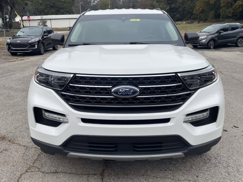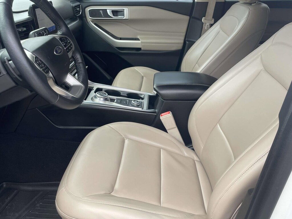 This 2021 Ford Explorer XLT 4WD in White is equipped with 10-Speed Automatic 2.3L EcoBoost I-4 ** Bluetooth, ** Apple Car Play / Android Auto, ** Quad Capt Chairs, ** 3rd Row Seat, ** Backup Camera, 4WD, 20" Premium Painted Aluminum Wheels, 3.58 Non-Limited-Slip Rear Axle Ratio, 3rd row seats: bench, 4-Wheel Disc Brakes, 6 Speakers, ABS brakes, Acoustic-Laminated Front Side Windows, ActiveX Captain's Chairs, Air Conditioning, Alloy wheels, AM/FM radio: SiriusXM, AM/FM Stereo, Auto High-beam Headlights, Automatic temperature control, Brake assist, Bumpers: body-color, Cargo Area Management System, Class III Trailer Tow Package, Compass, Delay-off headlights, Driver door bin, Driver vanity mirror, Dual front impact airbags, Dual front side impact airbags, Electronic Stability Control, Emergency communication system: SYNC 3 911 Assist, Equipment Group 202A, Evasive Steering Assist, Exterior Parking Camera Rear, Ford Co-Pilot360 Assist+, FordPass Connect, Four wheel independent suspension, Front & Second Row Floor Liners (16B), Front Bucket Seats, Front Center Armrest, Front dual zone A/C, Front reading lights, Fully automatic headlights, Heated door mirrors, Heated front seats, Heated Steering Wheel, Illuminated entry, Intelligent Adaptive Cruise Control, Knee airbag, Leather steering wheel, LED Fog Lamps, Low tire pressure warning, Navigation System, Occupant sensing airbag, Outside temperature display, Overhead airbag, Overhead console, Panic alarm, Passenger door bin, Passenger vanity mirror, Power door mirrors, Power driver seat, Power Liftgate, Power passenger seat, Power steering, Power windows, Rear air conditioning, Rear reading lights, Rear window defroster, Rear window wiper, Remote keyless entry, Remote Start System, Roof rack: rails only, Security system, SelectShift Capability w/Paddle Shifters, Speed control, Speed Sign Recognition, Speed-sensing steering, Speed-Sensitive Wipers, Split folding rear seat, Spoiler, Steering wheel mounted audio controls, SYNC 3 Communications & Entertainment System, SYNC 3/Apple CarPlay/Android Auto, Tachometer, Telescoping steering wheel, Tilt steering wheel, Traction control, Trip computer, Variably intermittent wipers, Voice-Activated Touchscreen Navigation System.