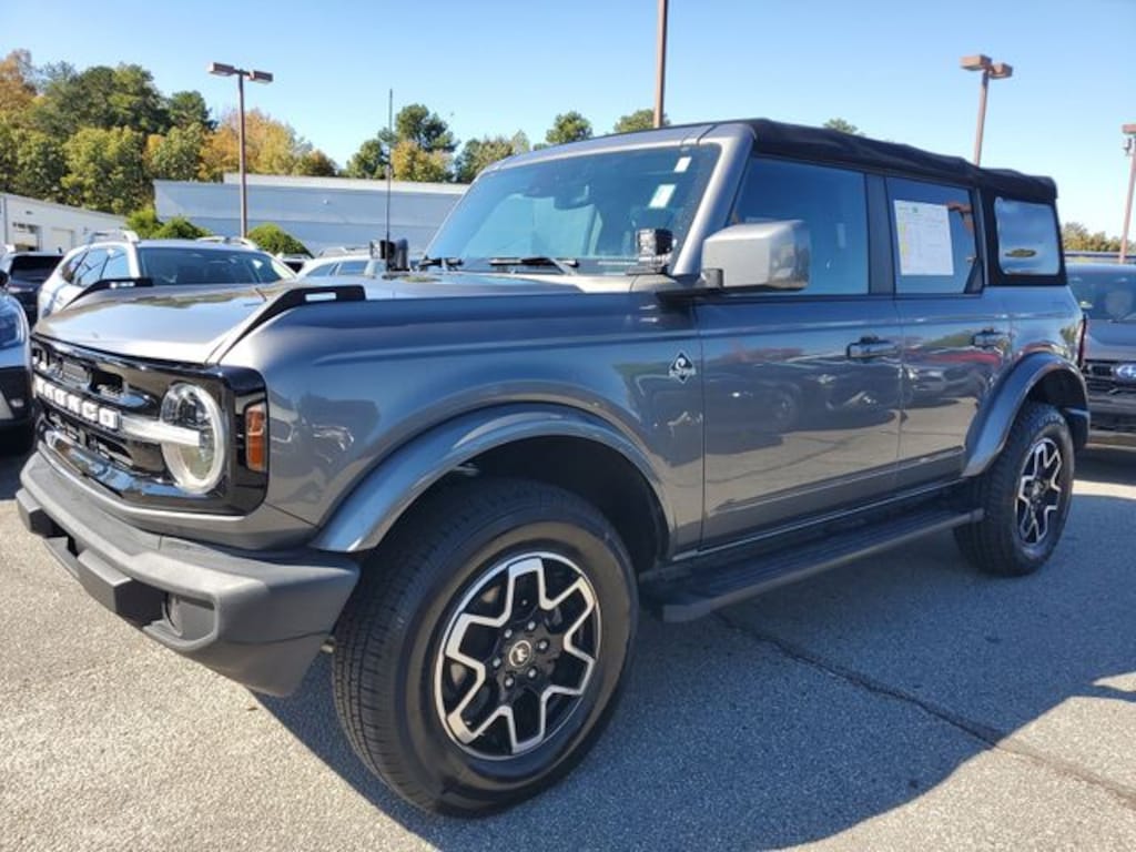 2022 Ford Bronco Outer Banks ** Bluetooth, ** Backup Camera, ** Apple Car Play / Android Auto, 18" Bright Machined Aluminum Wheels, 3.73 Axle Ratio, 4-Wheel Disc Brakes, 6 Speakers, ABS brakes, Air Conditioning, Alloy wheels, AM/FM radio: SiriusXM with 360L, AM/FM Stereo, Auto High-beam Headlights, Auto-dimming Rear-View mirror, Automatic temperature control, Brake assist, Compass, Connected Navigation, Delay-off headlights, Driver door bin, Driver vanity mirror, Dual front impact airbags, Dual front side impact airbags, Electronic Stability Control, Emergency communication system: 911 Assist, Equipment Group 312A Mid Package, Exterior Parking Camera Rear, Front & Rear Floor Liners, Front anti-roll bar, Front Bucket Seats, Front Center Armrest, Front dual zone A/C, Front fog lights, Front reading lights, Front wheel independent suspension, Fully automatic headlights, Heated Cloth Bucket Seats, Heated door mirrors, Heated front seats, Illuminated entry, Integrated roll-over protection, Leather Shift Knob, Low tire pressure warning, Navigation system: Connected Navigation, Occupant sensing airbag, Outside temperature display, Overhead console, Panic alarm, Passenger door bin, Passenger vanity mirror, Power door mirrors, Power steering, Power windows, Radio data system, Remote keyless entry, Security system, SiriusXM Radio w/360L, Speed control, Split folding rear seat, Steering wheel mounted audio controls, SYNC 4, Tachometer, Telescoping steering wheel, Tilt steering wheel, Traction control, Trip computer, Variably intermittent wipers, Voltmeter.