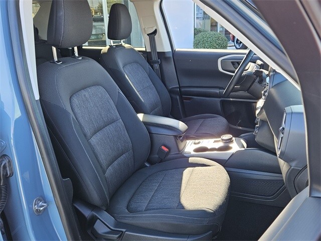 Area 51 2022 Ford Bronco Sport Big Bend 4WD 8-Speed Automatic 1.5L EcoBoost This Bronco Sport is equipped with. 3.80 Axle Ratio, 4-Wheel Disc Brakes, 6 Speakers, ABS brakes, Air Conditioning, Alloy wheels, AM/FM radio: SiriusXM, AM/FM Stereo, Auto High-beam Headlights, Automatic temperature control, Brake assist, Cargo Mat, Class II Trailer Tow Package w/Trailer Sway Control, Compass, Convenience Package, Delay-off headlights, Driver door bin, Driver vanity mirror, Dual front impact airbags, Dual front side impact airbags, Electronic Stability Control, Emergency communication system: SYNC 3 911 Assist, Equipment Group 200A, Evasive Steering Assist, Ford Co-Pilot360 Assist+, Four wheel independent suspension, Front & Rear Splash Guards, Front anti-roll bar, Front Bucket Seats, Front Center Armrest, Front Driver & Passenger Seatback Zipper Pockets, Front reading lights, Fully automatic headlights, Heated door mirrors, Heated Front Bucket Seats, Illuminated entry, Intelligent Access (Lock/Unlock), Intelligent Adaptive Cruise Control w/Stop & Go, Knee airbag, Leather-Wrapped Steering Wheel, LED Fog Lamps, Low tire pressure warning, Occupant sensing airbag, Outside temperature display, Overhead airbag, Overhead console, Panic alarm, Passenger door bin, Passenger vanity mirror, Power door mirrors, Power steering, Power windows, Radio data system, Rear anti-roll bar, Rear Parking Sensors, Rear reading lights, Rear seat center armrest, Rear window defroster, Rear window wiper, Remote keyless entry, Roof rack: rails only, Security system, SiriusXM Radio, Speed control, Speed-sensing steering, Speed-Sensitive Wipers, Split folding rear seat, Steering wheel mounted audio controls, SYNC 3 Communications & Entertainment System, SYNC 3/Apple CarPlay/Android Auto, Tachometer, Telescoping steering wheel, Tilt steering wheel, Traction control, Trip computer, Unique Cloth Front Bucket Seats, Universal Garage Door Opener (UGDO), Variably intermittent wipers, Voice-Activated Touchscreen Navigation System, Wheels: 17" Carbonized Gray-Painted Aluminum, Wireless Charging Pad.