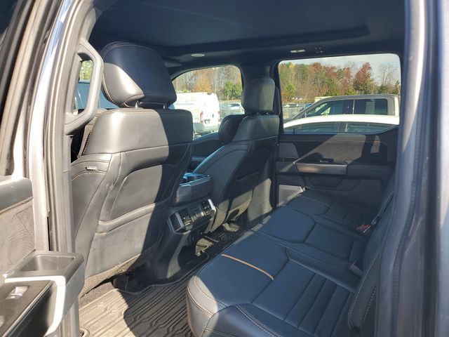 2022 Ford F-150 Platinum CARFAX One-Owner. ** Bluetooth, ** Backup Camera, ** Apple Car Play / Android Auto, 3.5L PowerBoost Full-Hybrid V6, 4WD, 20" Polished Aluminum Wheels, 360 Degree Camera, 4-Wheel Disc Brakes, 4x4 FX4 Off-Road Bodyside Decal, 8 Speakers, ABS brakes, Active Park Assist 2.0, Adaptive Steering, Adjustable pedals, Air Conditioning, Alloy wheels, AM/FM radio: SiriusXM with 360L, Auto High-beam Headlights, Auto Start-Stop Removal, Auto tilt-away steering wheel, Auto-dimming door mirrors, Auto-dimming Rear-View mirror, Automatic temperature control, Bed Utility Package, BlueCruise, BoxLink, Brake assist, Bumpers: body-color, Class IV Trailer Hitch Receiver, Compass, Delay-off headlights, Driver door bin, Driver vanity mirror, Dual front impact airbags, Dual front side impact airbags, Electronic Locking w/3.31 Axle Ratio, Electronic Stability Control, Emergency communication system: SYNC 4 911 Assist, Equipment Group 701A High, Extended Range 36 Gallon Fuel Tank, Exterior Parking Camera Rear, Ford Co-Pilot360 Active 2.0, Front Bucket Seats, Front Center Armrest, Front dual zone A/C, Front fog lights, Front reading lights, Front wheel independent suspension, Fully automatic headlights, FX4 Off-Road Package, Garage door transmitter, Heated door mirrors, Heated front seats, Heated rear seats, Heated steering wheel, Hill Descent Control, Illuminated entry, Integrated Trailer Brake Controller, Interior Work Surface, LED Box Lighting, LED Sideview Mirror Spotlights, Low tire pressure warning, Max Recline Driver & Passenger Seat, Max Trailer Tow Package, Memory seat, Monotube Rear Shocks, Navigation System, Occupant sensing airbag, Off-Road Tuned Front Shock Absorbers, Outside temperature display, Overhead airbag, Overhead console, Panic alarm, Passenger door bin, Passenger vanity mirror, Pedal memory, Power door mirrors, Power driver seat, Power passenger seat, Power steering, Power Tailgate, Power windows, Pro Power Onboard - 7.2KW, Pro Trailer Backup Assist, Radio data system, Radio: B&O Unleashed Sound System by Bang & Olufsen, Rain sensing wipers, Rear reading lights, Rear seat center armrest, Rear step bumper, Rear window defroster, Remote keyless entry, Rock Crawl Mode, Security system, Speed control, Speed-sensing steering, Split folding rear seat, Steering wheel memory, Steering wheel mounted audio controls, SYNC 4 w/Enhanced Voice Recognition, Tachometer, Tailgate Step w/Tailgate Work Surface, Telescoping steering wheel, Tilt steering wheel, Tough Bed Spray-In Bedliner, Tow Technology Package, Traction control, Tray Style Floor Liner, Trip computer, Turn signal indicator mirrors, Twin Panel Moonroof, Unique Multi-Contour Leather Bucket Seats, Variably intermittent wipers, Ventilated front seats, Voltmeter.