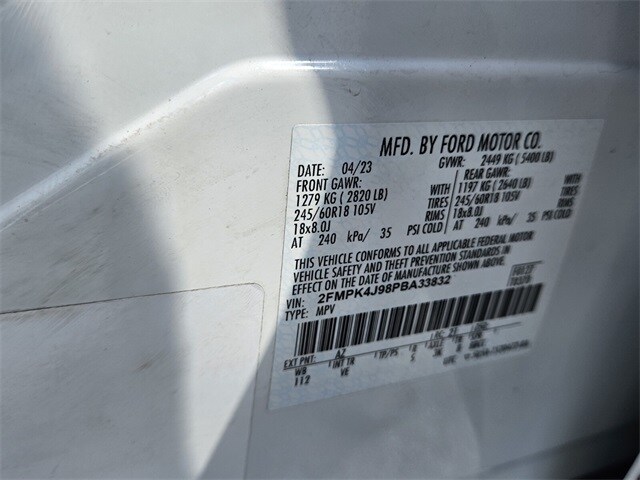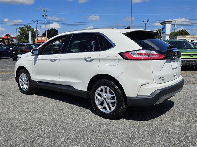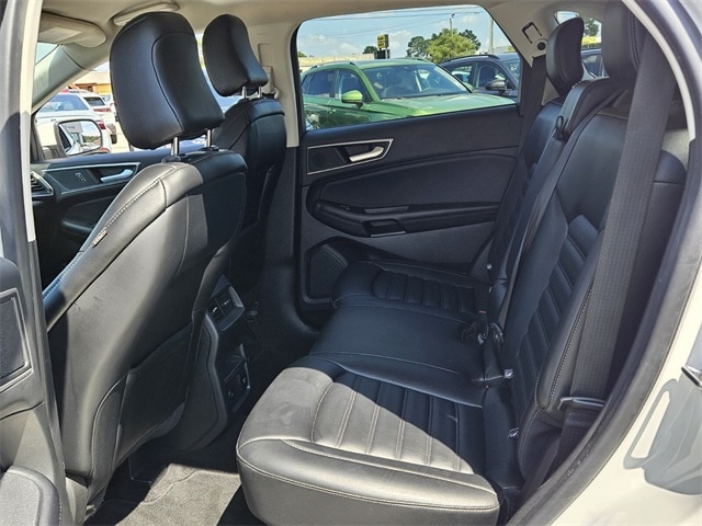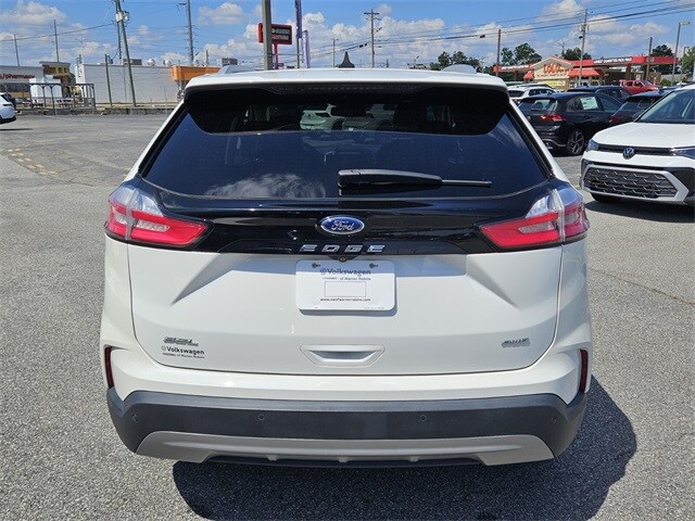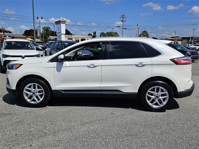 Star White Metallic Tri-Coat 2023 Ford Edge SEL AWD 8-Speed Automatic EcoBoost 2.0L I4 GTDi DOHC Turbocharged VCT This Edge is equipped with. AWD, 110V/150W AC Power Outlet, 3.80 Axle Ratio, 4-Wheel Disc Brakes, 6 Speakers, ABS brakes, ActiveX Seating Material Heated Bucket Seats, Air Conditioning, Alloy wheels, AM/FM radio: SiriusXM with 360L, Auto High-beam Headlights, Auto-dimming Rear-View mirror, Automatic temperature control, Brake assist, Bumpers: body-color, Compass, Convenience Package, Delay-off headlights, Driver door bin, Driver vanity mirror, Dual front impact airbags, Dual front side impact airbags, Electronic Stability Control, Emergency communication system: SYNC 4 911 Assist, Equipment Group 201A, Fog Lamps w/Iconic Silver Bezel, FordPass Connect, Four wheel independent suspension, Front anti-roll bar, Front Bucket Seats, Front Center Armrest w/Storage, Front dual zone A/C, Front reading lights, Fully automatic headlights, Heated door mirrors, Heated front seats, Illuminated entry, Knee airbag, Leather steering wheel, Leather-Wrapped Steering Wheel, Low tire pressure warning, Occupant sensing airbag, Outside temperature display, Overhead airbag, Overhead console, Panic alarm, Passenger door bin, Passenger vanity mirror, Perimeter Alarm, Power door mirrors, Power driver seat, Power Liftgate, Power passenger seat, Power steering, Power windows, Radio: AM/FM Stereo/MP3 Capable, Rear anti-roll bar, Rear Parking Sensors, Rear reading lights, Rear seat center armrest, Rear window defroster, Rear window wiper, Remote keyless entry, Remote Start System, Silver Roof-Rack Side Rails, SiriusXM w/360L, Speed control, Speed-Sensitive Wipers, Split folding rear seat, Spoiler, Steering wheel mounted audio controls, SYNC 4A w/Enhanced Voice Recognition, Tachometer, Telescoping steering wheel, Tilt steering wheel, Traction control, Trip computer, Universal Garage Door Opener (UGDO), Variably intermittent wipers, Wheels: 18" Sparkle Silver-Painted Aluminum, Wireless Charging Pad, AWD.