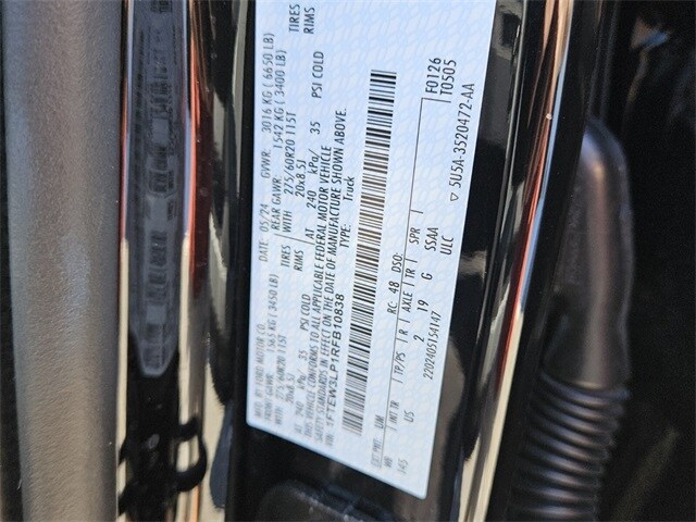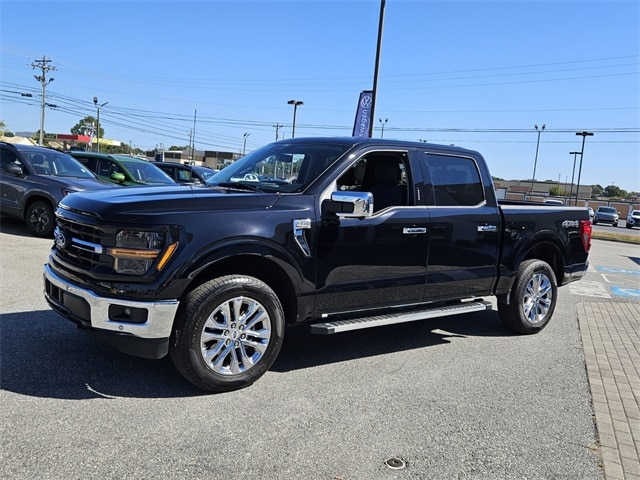 Agate Black Metallic 2024 Ford F-150 XLT 4WD 10-Speed Automatic 2.7L V6 EcoBoost This F-150 is equipped with. 4WD, 3.55 Axle Ratio, 4-Wheel Disc Brakes, 400W Cab & Bed Outlets, 6 Speakers, ABS brakes, Adaptive Cruise Control w/Stop & Go, Air Conditioning, Alloy wheels, AM/FM radio: SiriusXM with 360L, Auto High-beam Headlights, Auto-Dimming Rear-View Mirror, Auto-dimming Rear-View mirror, Automatic temperature control, Brake assist, Bumpers: chrome, Chrome wheels, Cloth 40/20/40 Front Seat, Cloth 40/Console/40 Front Seats, Compass, Delay-off headlights, Driver door bin, Driver vanity mirror, Dual front impact airbags, Dual front side impact airbags, Electronic Stability Control, Emergency communication system: SYNC 4 911 Assist, Equipment Group 302A Mid, Ford BlueCruise Equipped (90-Day Trial), Front anti-roll bar, Front Center Armrest w/Storage, Front dual zone A/C, Front fog lights, Front reading lights, Front wheel independent suspension, Fully automatic headlights, GVWR: 6,650 lbs Payload Package, Heated door mirrors, Heated Front Seats, Illuminated entry, Intelligent Access w/Push Button Start, LED Sideview Mirror Spotlights, Low tire pressure warning, Navigation system: Connected Navigation, Occupant sensing airbag, Outside temperature display, Overhead airbag, Overhead console, Panic alarm, Passenger door bin, Passenger vanity mirror, Power door mirrors, Power driver seat, Power Glass Heated Sideview Mirrors, Power steering, Power windows, Power-Sliding Rear Window, Radio data system, Radio: AM/FM SiriusXM w/360L, Rear reading lights, Rear step bumper, Rear window defroster, Remote keyless entry, Remote Start System w/Remote Tailgate Release, Security system, Speed control, Speed Sign Recognition, Split folding rear seat, Steering wheel mounted audio controls, SYNC 4 w/Enhanced Voice Recognition, Tachometer, Telescoping steering wheel, Tilt steering wheel, Traction control, Trip computer, Variably intermittent wipers, Voltmeter, Wheels: 18" Chrome-Like PVD, Wheels: 20" Chrome-Like PVD, 4WD.