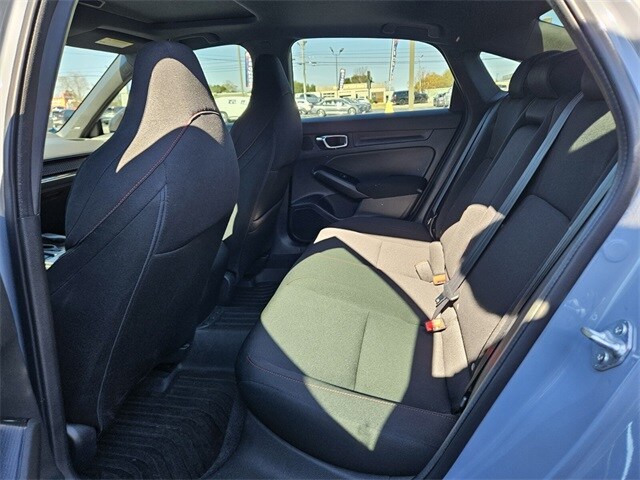 Gray 2022 Honda Civic Si FWD 6-Speed Manual 1.5L I4 DOHC 16V This Civic is equipped with. Black/Red Cloth, 12 Speakers, 4-Wheel Disc Brakes, ABS brakes, Air Conditioning, Alloy wheels, AM/FM radio, Apple CarPlay/Android Auto, Auto High-beam Headlights, Automatic temperature control, Blind Spot Information (BSI) System warning, Bose Premium Sound System, Brake assist, Bumpers: body-color, Delay-off headlights, Driver door bin, Driver vanity mirror, Dual front impact airbags, Dual front side impact airbags, Electronic Stability Control, Exterior Parking Camera Rear, Fabric Seat Trim, Forward collision: Collision Mitigation Braking System (CMBS) + FCW mitigation, Four wheel independent suspension, Front anti-roll bar, Front Bucket Seats, Front Center Armrest, Front dual zone A/C, Front reading lights, Fully automatic headlights, Heated door mirrors, Illuminated entry, Knee airbag, Leather Shift Knob, Leather steering wheel, Low tire pressure warning, Occupant sensing airbag, Outside temperature display, Overhead airbag, Overhead console, Panic alarm, Passenger door bin, Passenger vanity mirror, Power door mirrors, Power moonroof, Power steering, Power windows, Radio data system, Rear anti-roll bar, Rear seat center armrest, Rear side impact airbag, Rear window defroster, Remote keyless entry, Security system, Speed control, Speed-sensing steering, Split folding rear seat, Spoiler, Steering wheel mounted audio controls, Tachometer, Telescoping steering wheel, Tilt steering wheel, Traction control, Trip computer, Variably intermittent wipers, Wheels: 18" Matte Black Alloy, Black/Red Cloth.