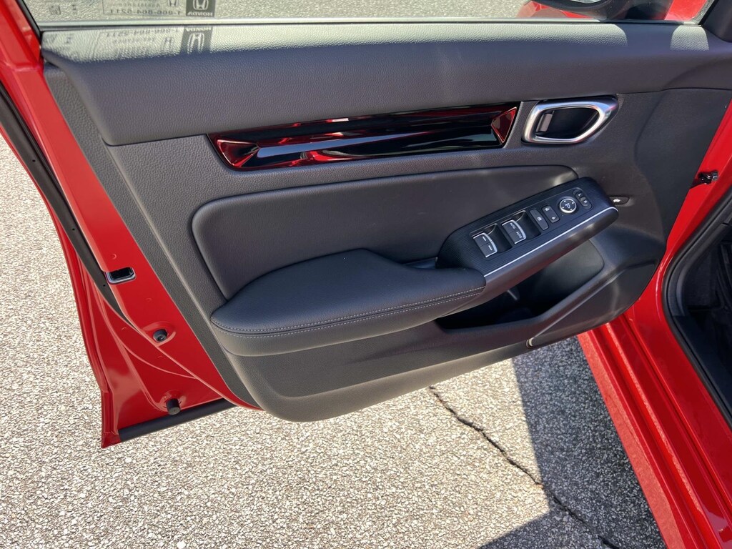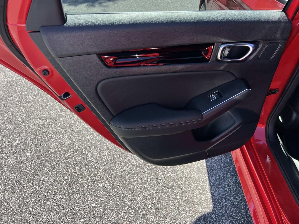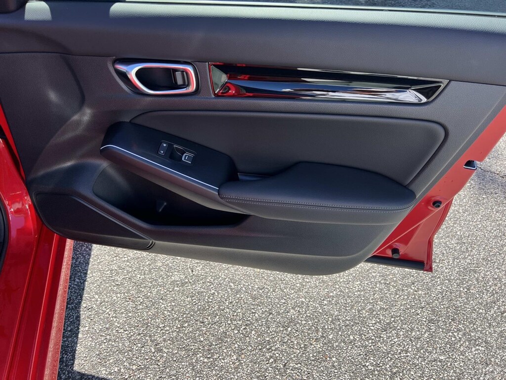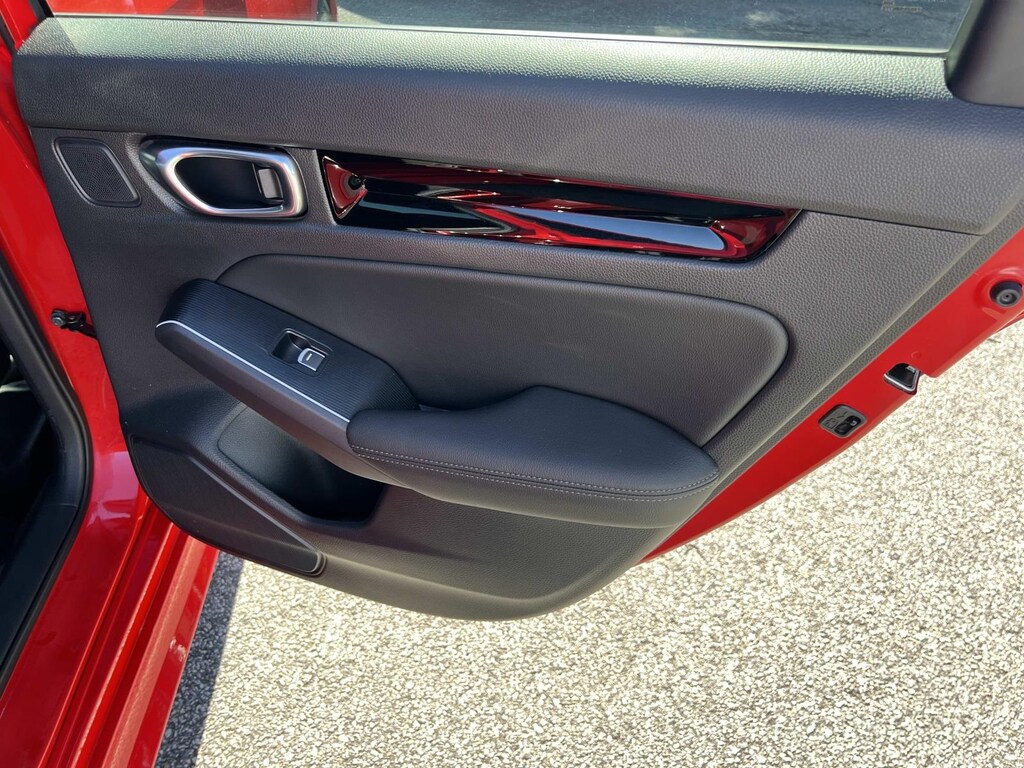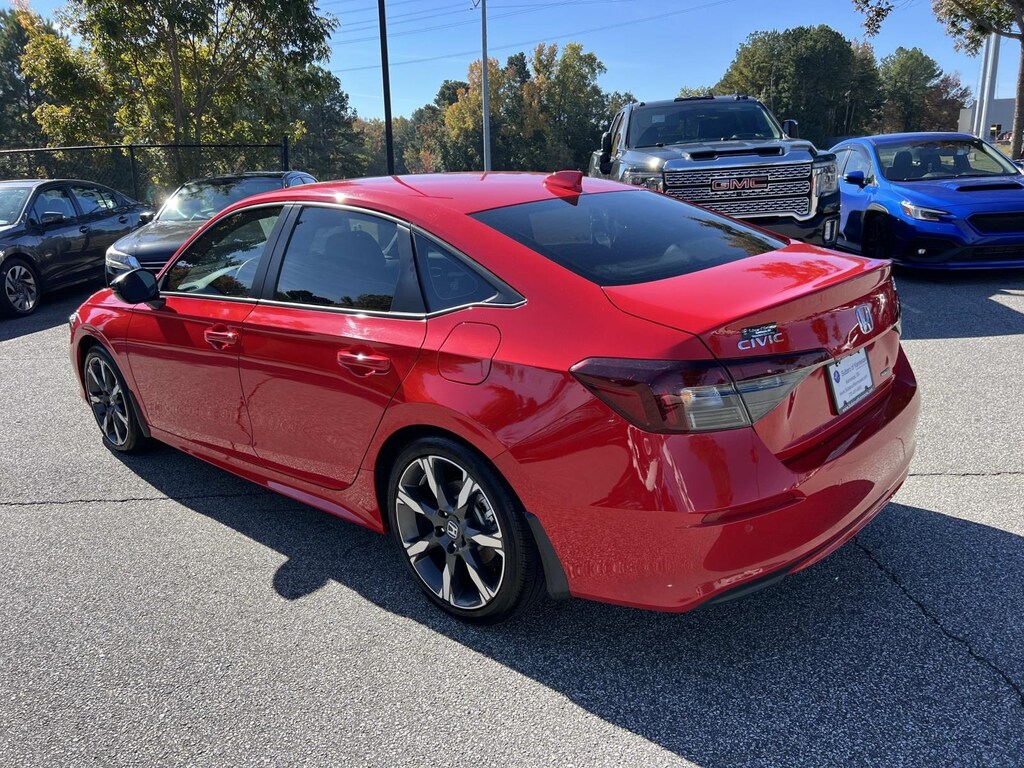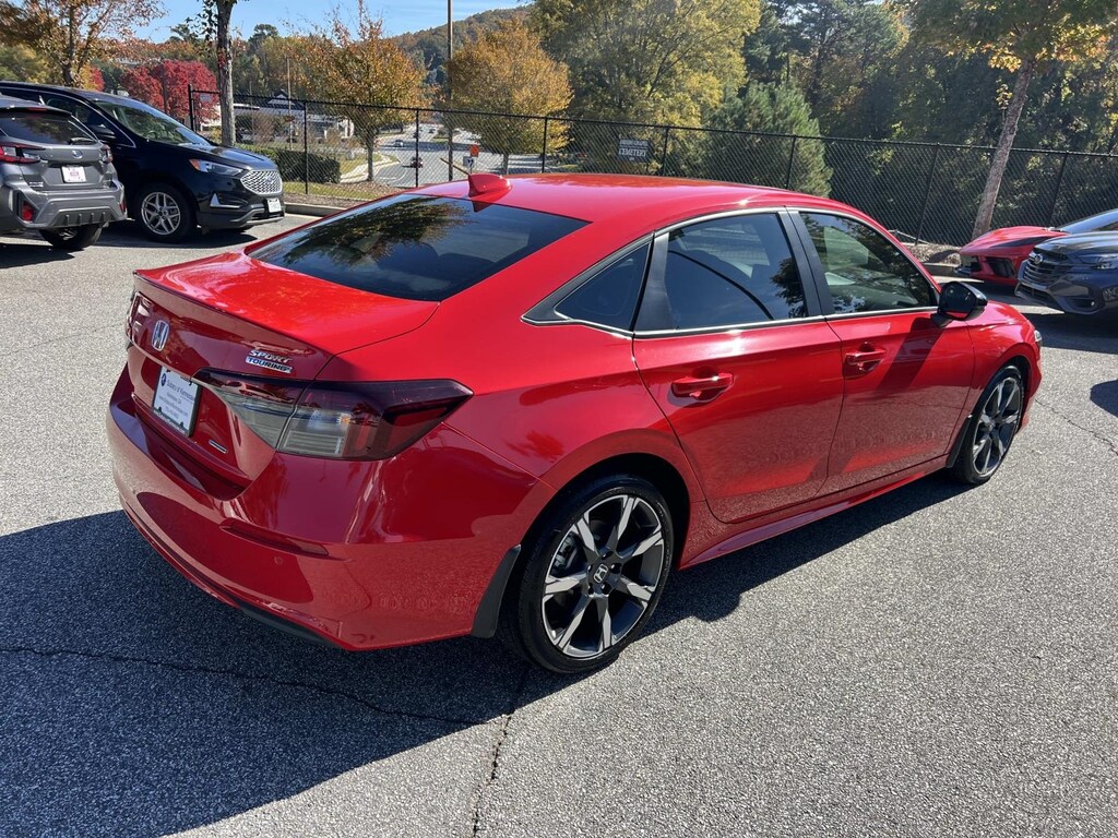 Red 2025 Honda Civic Hybrid Sport FWD eCVT 2.0L 16V DOHC New Feature, **Back up Camera, Civic Hybrid Sport, 4D Sedan, 2.0L 16V DOHC, eCVT, FWD, Red, 4-Wheel Disc Brakes, 8 Speakers, ABS brakes, Adaptive Cruise Control: Adaptive Cruise Control (ACC) with Low-Speed Follow, Air Conditioning, Alloy wheels, AM/FM radio, Apple CarPlay/Android Auto, Auto High-beam Headlights, Automatic temperature control, Blind Spot Information (BSI) System warning, Brake assist, Bumpers: body-color, Cloth/Leatherette Seat Trim, Delay-off headlights, Driver door bin, Driver vanity mirror, Dual front impact airbags, Dual front side impact airbags, Electronic Stability Control, Emergency communication system: HondaLink, Exterior Parking Camera Rear, Four wheel independent suspension, Front anti-roll bar, Front Bucket Seats, Front Center Armrest, Front dual zone A/C, Front reading lights, Fully automatic headlights, Heated door mirrors, Heated Front Bucket Seats, Heated front seats, Illuminated entry, Knee airbag, Leather Shift Knob, Leather steering wheel, Low tire pressure warning, Occupant sensing airbag, Outside temperature display, Overhead airbag, Panic alarm, Passenger door bin, Passenger vanity mirror, Power door mirrors, Power moonroof, Power steering, Power windows, Radio data system, Radio: 180-Watt Audio System, Rear anti-roll bar, Rear seat center armrest, Rear side impact airbag, Rear window defroster, Remote keyless entry, Security system, Speed control, Speed-sensing steering, Split folding rear seat, Steering wheel mounted audio controls, Tachometer, Telescoping steering wheel, Tilt steering wheel, Traction control, Trip computer, Variably intermittent wipers, Wheels: 18" Gloss Black Alloy.