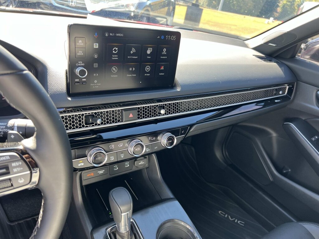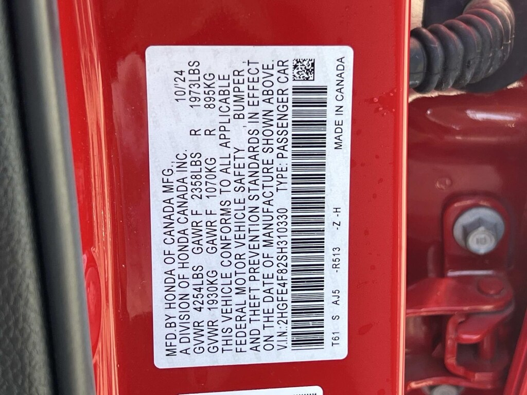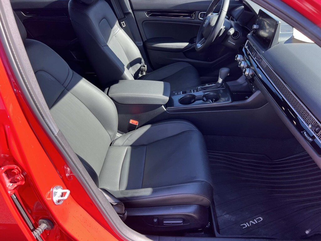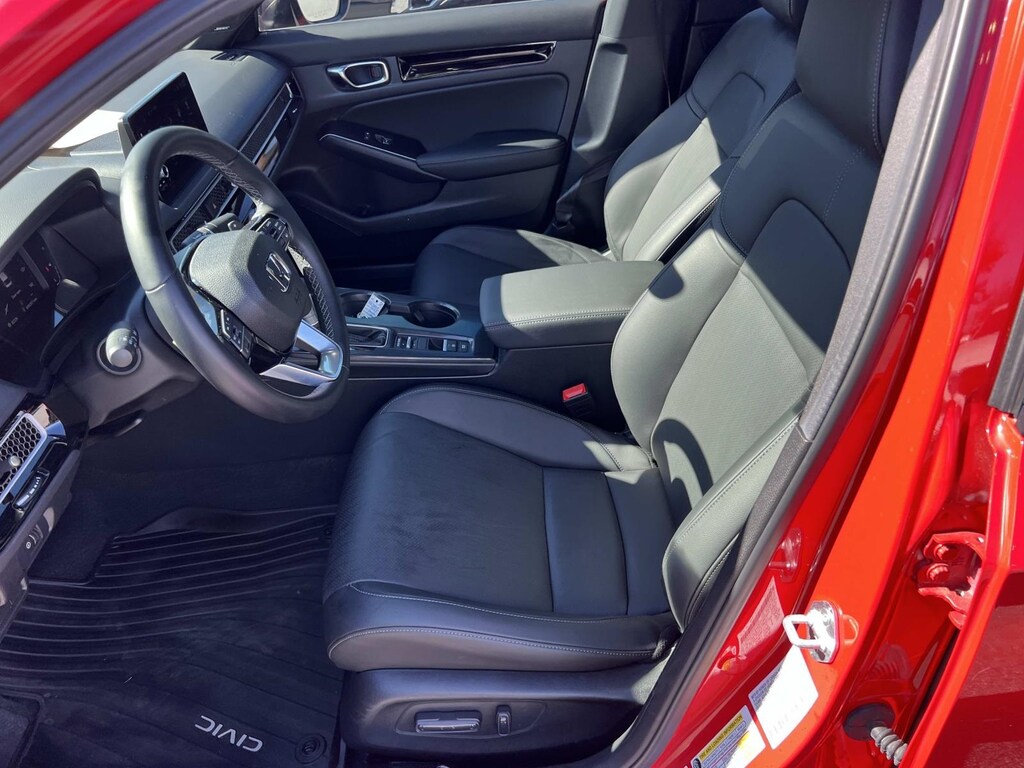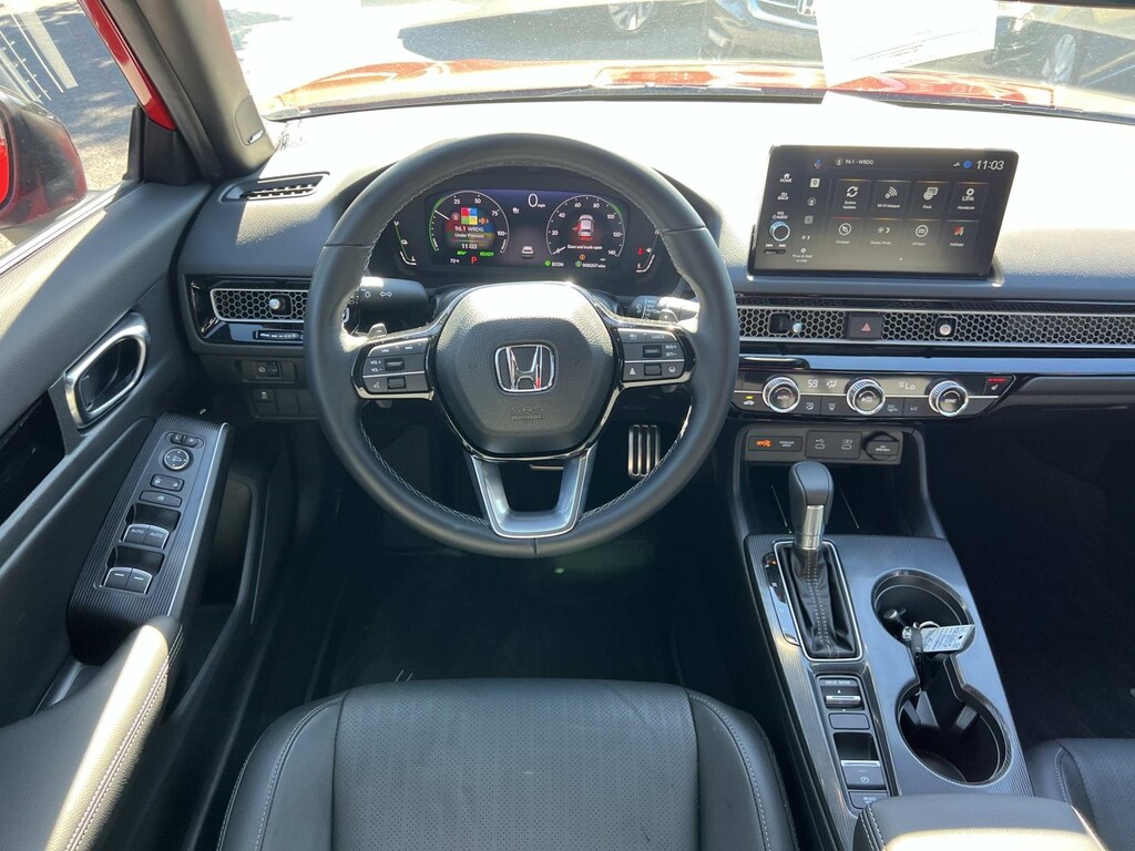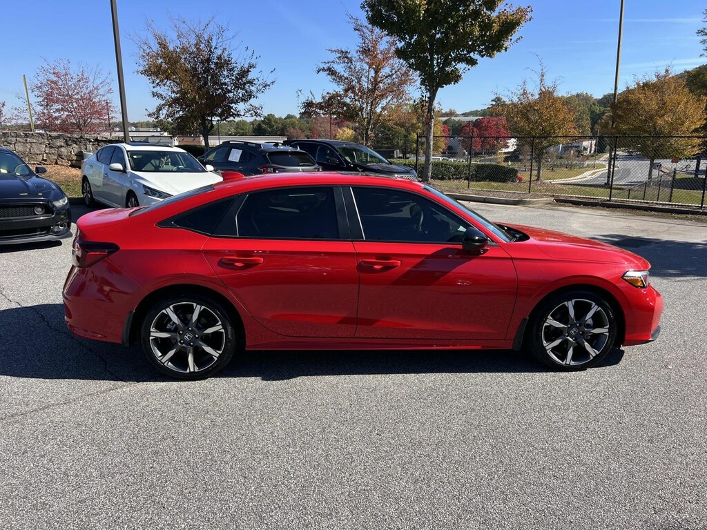 Red 2025 Honda Civic Hybrid Sport FWD eCVT 2.0L 16V DOHC New Feature, **Back up Camera, Civic Hybrid Sport, 4D Sedan, 2.0L 16V DOHC, eCVT, FWD, Red, 4-Wheel Disc Brakes, 8 Speakers, ABS brakes, Adaptive Cruise Control: Adaptive Cruise Control (ACC) with Low-Speed Follow, Air Conditioning, Alloy wheels, AM/FM radio, Apple CarPlay/Android Auto, Auto High-beam Headlights, Automatic temperature control, Blind Spot Information (BSI) System warning, Brake assist, Bumpers: body-color, Cloth/Leatherette Seat Trim, Delay-off headlights, Driver door bin, Driver vanity mirror, Dual front impact airbags, Dual front side impact airbags, Electronic Stability Control, Emergency communication system: HondaLink, Exterior Parking Camera Rear, Four wheel independent suspension, Front anti-roll bar, Front Bucket Seats, Front Center Armrest, Front dual zone A/C, Front reading lights, Fully automatic headlights, Heated door mirrors, Heated Front Bucket Seats, Heated front seats, Illuminated entry, Knee airbag, Leather Shift Knob, Leather steering wheel, Low tire pressure warning, Occupant sensing airbag, Outside temperature display, Overhead airbag, Panic alarm, Passenger door bin, Passenger vanity mirror, Power door mirrors, Power moonroof, Power steering, Power windows, Radio data system, Radio: 180-Watt Audio System, Rear anti-roll bar, Rear seat center armrest, Rear side impact airbag, Rear window defroster, Remote keyless entry, Security system, Speed control, Speed-sensing steering, Split folding rear seat, Steering wheel mounted audio controls, Tachometer, Telescoping steering wheel, Tilt steering wheel, Traction control, Trip computer, Variably intermittent wipers, Wheels: 18" Gloss Black Alloy.