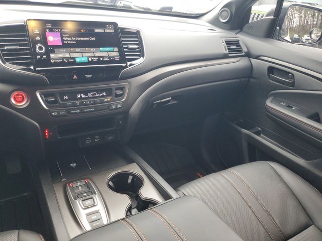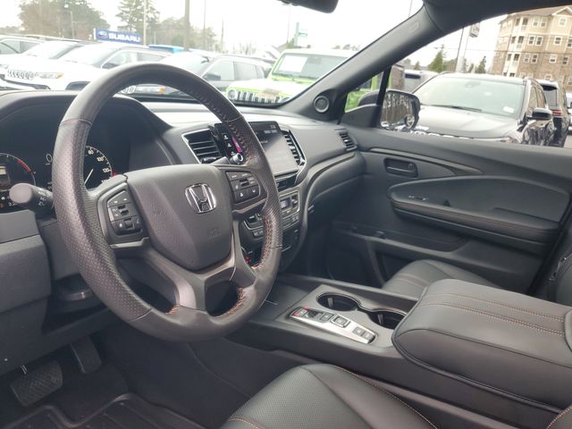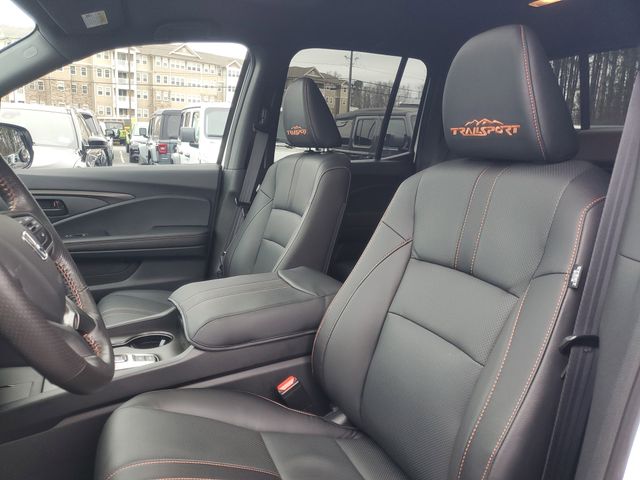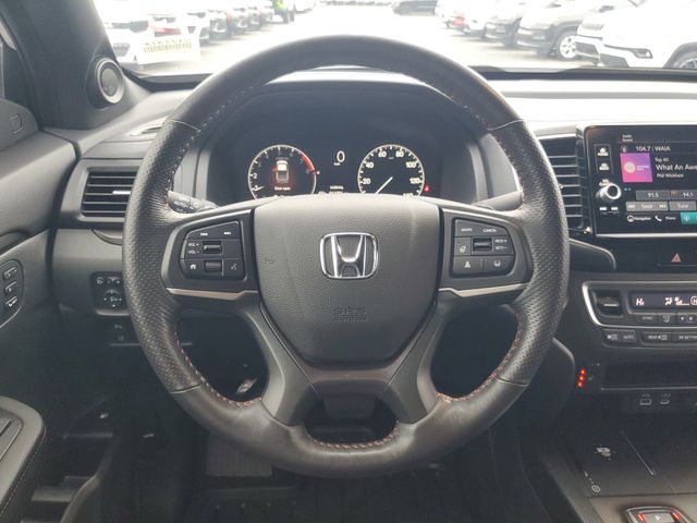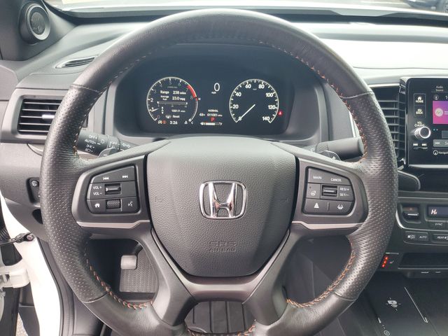 2025 Honda Ridgeline TrailSport CARFAX One-Owner. ** Bluetooth, ** Backup Camera, ** Apple Car Play / Android Auto, Black Leather, 4-Wheel Disc Brakes, 4.33 Axle Ratio, 7 Speakers, ABS brakes, Air Conditioning, Alloy wheels, AM/FM radio: SiriusXM, Auto-dimming Rear-View mirror, Automatic temperature control, Blind Spot Information (BSI) System warning, Bluetooth® Hands-Free Link, Brake assist, Bumpers: body-color, Compass, Delay-off headlights, Driver door bin, Driver vanity mirror, Driver's Seat Mounted Armrest, Dual front impact airbags, Dual front side impact airbags, Electronic Stability Control, Emergency communication system: HondaLink Assist, Exterior Parking Camera Rear, Four wheel independent suspension, Front Bucket Seats, Front dual zone A/C, Front fog lights, Front reading lights, Fully automatic headlights, Garage door transmitter: HomeLink, Heated door mirrors, Heated Front Bucket Seats, Heated front seats, Heated steering wheel, Honda Satellite-Linked Navigation System, Illuminated entry, Leather Seat Trim, Leather steering wheel, Low tire pressure warning, Memory seat, Navigation system: Honda Satellite-Linked Navigation System, Occupant sensing airbag, Outside temperature display, Overhead airbag, Overhead console, Panic alarm, Passenger door bin, Passenger seat mounted armrest, Passenger vanity mirror, Power door mirrors, Power driver seat, Power moonroof, Power passenger seat, Power steering, Power windows, Radio data system, Radio: 215-Watt Audio System w/7 Speakers, Rear air conditioning, Rear reading lights, Rear seat center armrest, Rear window defroster, Remote keyless entry, Security system, SiriusXM, Speed control, Speed-sensing steering, Split folding rear seat, Steering wheel mounted audio controls, Tachometer, Telescoping steering wheel, Tilt steering wheel, Traction control, Trip computer, Turn signal indicator mirrors, Variably intermittent wipers, Wheels: 18" TrailSport Pewter Gray Alloy.