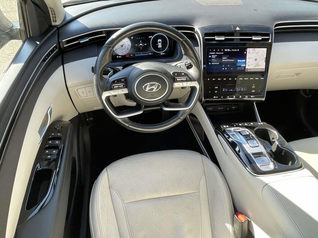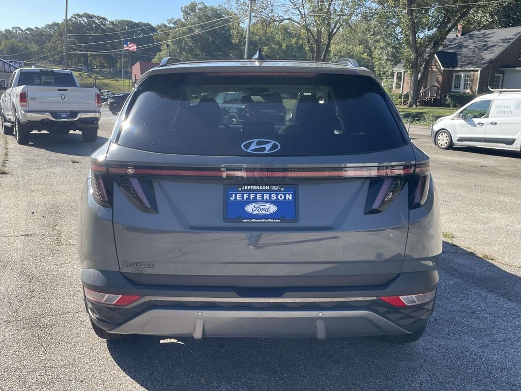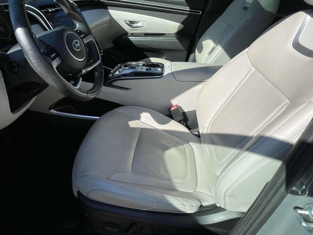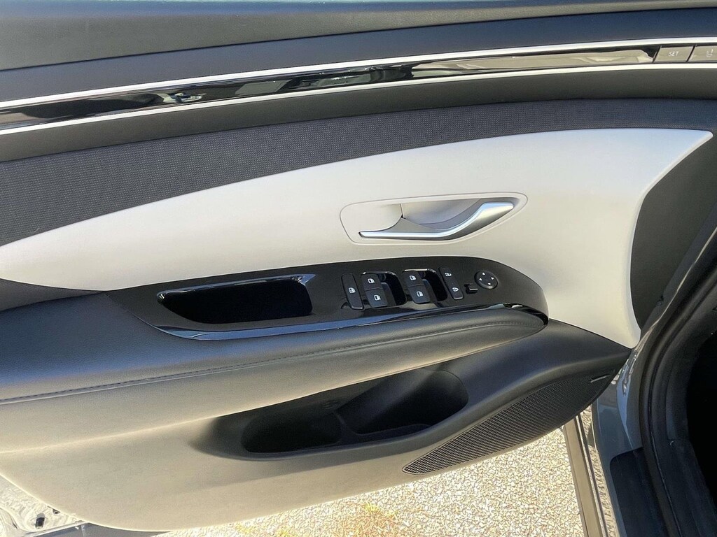 This 2024 Hyundai Tucson in Hampton Gray is equipped with. Limited FWD 8-Speed Automatic with SHIFTRONIC 2.5L I4 DGI DOHC 16V LEV3-SULEV30 187hp 4-Wheel Disc Brakes, 8 Speakers, ABS brakes, Air Conditioning, Alloy wheels, Auto High-beam Headlights, Automatic temperature control, Brake assist, Bumpers: body-color, Delay-off headlights, Dual front impact airbags, Dual front side impact airbags, Exterior Parking Camera Rear, Four wheel independent suspension, Front dual zone A/C, Fully automatic headlights, Heated door mirrors, Memory seat, Navigation System, Option Group 01, Power door mirrors, Power driver seat, Power Liftgate, Power moonroof, Power steering, Power windows, Rain sensing wipers, Rear window defroster, Rear window wiper, Remote keyless entry, Roof rack: rails only, Spoiler, Steering wheel mounted audio controls, Turn signal indicator mirrors, Variably intermittent wipers.