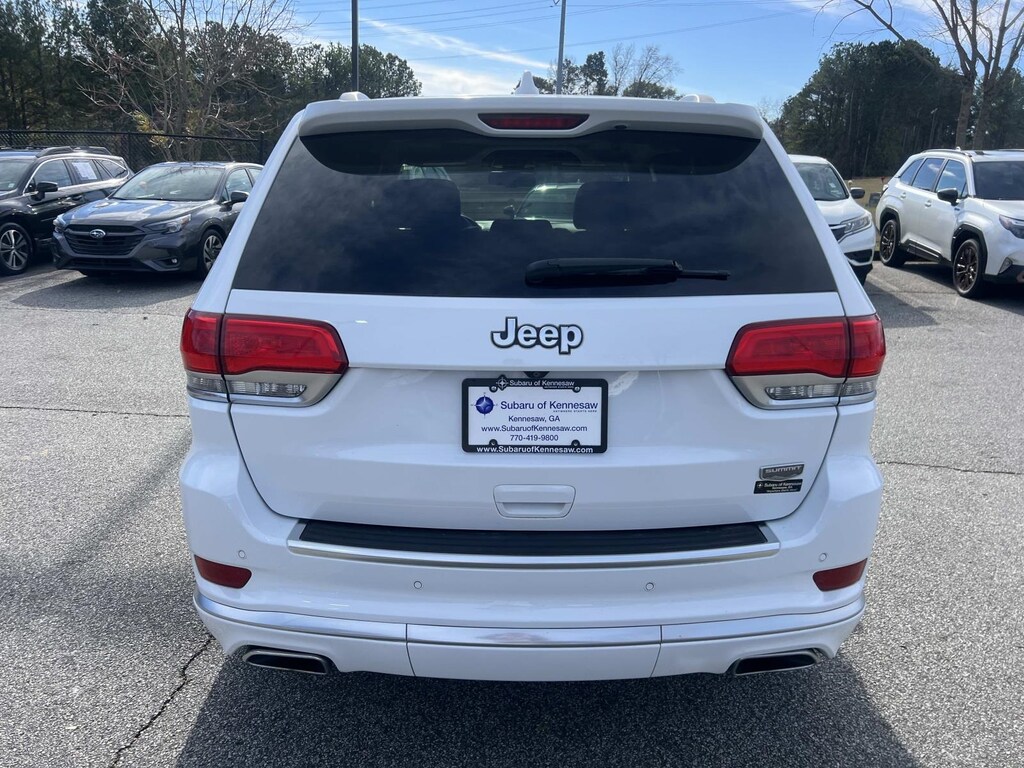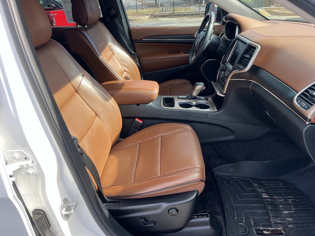 Bright White Clearcoat 2016 Jeep Grand Cherokee Summit RWD 8-Speed Automatic 3.6L V6 24V VVT New Feature, **Back up Camera, **Keyless Entry, **Heated Seats, **Sunroof/Moonroof, Grand Cherokee Summit, 4D Sport Utility, 3.6L V6 24V VVT, 8-Speed Automatic, RWD, Bright White Clearcoat, Black/Dark Sienna Brown Leather, 19 Speakers, 20" x 8.0" Polished Aluminum Wheels, 3.27 Rear Axle Ratio, 4-Wheel Disc Brakes, 8.4" Touchscreen Display, ABS brakes, Air Conditioning, Alloy wheels, AM/FM radio: SiriusXM, Anti-whiplash front head restraints, Audio memory, Auto High-beam Headlights, Auto-dimming door mirrors, Auto-dimming Rear-View mirror, Automatic temperature control, Blind spot sensor: warning, Body Color Door Handles, Body Color Exterior Mirrors, Body Color Sills w/Platinum, Body Color/Platinum Front Fascia, Body Color/Platinum Rear Fascia, Brake assist, Bumpers: body-color, Compass, Dark Sienna Brown/Black Interior Color, Delay-off headlights, Distance-Pacing Cruise Control, Driver door bin, Driver vanity mirror, Dual front impact airbags, Dual front side impact airbags, Eco Suspension I, Electronic Stability Control, Emergency communication system, Engine Oil Cooler, Exterior Parking Camera Rear, Four wheel independent suspension, Front anti-roll bar, Front Bucket Seats, Front Center Armrest w/Storage, Front dual zone A/C, Front fog lights, Front reading lights, Fully automatic headlights, Garage door transmitter, Genuine wood dashboard insert, Gloss Black Grille-Platinum Chrome, Headlight cleaning, Heated door mirrors, Heated front seats, Heated rear seats, Heated steering wheel, High intensity discharge headlights: Bi-Xenon, Illuminated entry, Instrument Cluster w/Off-Road Disp. Pages, Knee airbag, Leather Shift Knob, Leather steering wheel, Leather Trimmed Bucket Seats, Low tire pressure warning, Memory seat, Navigation System, Occupant sensing airbag, Outside temperature display, Overhead airbag, Overhead console, Panic alarm, Passenger vanity mirror, Platinum Badge, Platinum Series Group (Regional), Platinum Strip Tail Lamp, Power door mirrors, Power driver seat, Power Liftgate, Power moonroof, Power passenger seat, Power steering, Power windows, Quick Order Package 23R, Radio data system, Radio: Uconnect 8.4 NAV, Rain sensing wipers, Rear anti-roll bar, Rear reading lights, Rear seat center armrest, Rear window defroster, Rear window wiper, Remote keyless entry, Roof rack: rails only, Security system, SiriusXM Satellite Radio, Speed control, Speed-Sensitive Wipers, Split folding rear seat, Spoiler, Steering wheel mounted audio controls, Tachometer, Telescoping steering wheel, Tilt steering wheel, Traction control, Trip computer, Turn signal indicator mirrors, Variably intermittent wipers, Ventilated front seats, Wheels: 20" x 8.0" Satin Carbon.