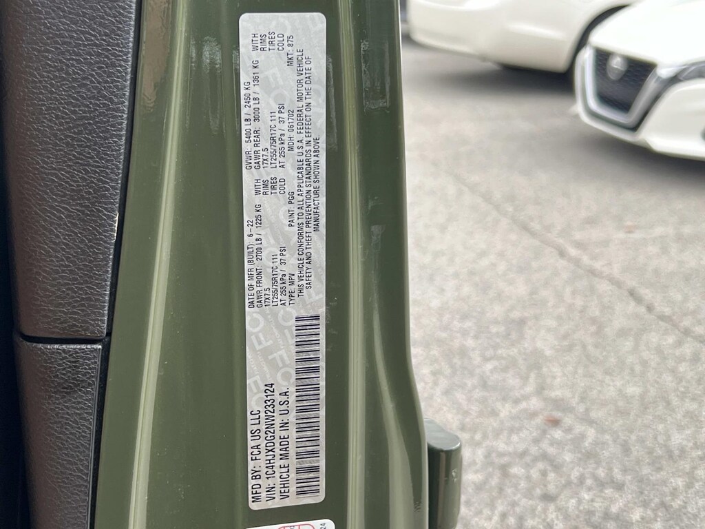 Sarge Green Clearcoat 2022 Jeep Wrangler Unlimited Willys 4WD 6-Speed Manual 3.6L V6 24V VVT New Feature, Wrangler Unlimited Willys, 4D Sport Utility, 3.6L V6 24V VVT, 6-Speed Manual, 4WD, Sarge Green Clearcoat, Black Cloth, 110 MPH Vehicle Max Speed Calibration, 240 Amp Alternator, 3.45 Rear Axle Ratio, 4-Wheel Disc Brakes, 4-Wheel Drive Swing Gate Decal, 7 & 4 Pin Wiring Harness, 700 Amp Maintenance Free Battery, 8 Speakers, 97 MPH Vehicle Max Speed Calibration, ABS brakes, Air Conditioning, AM/FM radio, Anti-Spin Differential Rear Axle, Aux Battery, Auxiliary Switches, BF Goodrich Brand Tires, Black Grille, Black Trail Rated Badge, Brake assist, Class II Receiver Hitch, Cloth Low-Back Bucket Seats, Compass, Deep Tint Sunscreen Windows, Delay-off headlights, Driver door bin, Driver vanity mirror, Dual front impact airbags, Dual front side impact airbags, Electronic Stability Control, Emergency communication system: SiriusXM Guardian, Engine Oil Cooler, Front anti-roll bar, Front Bucket Seats, Front Center Armrest w/Storage, Front fog lights, Front reading lights, Integrated roll-over protection, Low tire pressure warning, Matte Black Jeep Badge, Mold In Color Bumper w/Gloss Black, MOPAR All-Weather Floor Mats, Normal Duty Suspension, Occupant sensing airbag, Outside temperature display, ParkView Rear Back-Up Camera, Passenger door bin, Passenger vanity mirror, Power steering, Quick Order Package 23K Willys Sport, Radio data system, Radio: Uconnect 4 w/7" Display, Rear anti-roll bar, Rear reading lights, Speed control, Split folding rear seat, Steering wheel mounted audio controls, Stop-Start Dual Battery System, Tachometer, Telescoping steering wheel, Tilt steering wheel, Traction control, Trailer Tow & HD Electrical Group, Trip computer, Variably intermittent wipers, Wheels: 17" x 7.5" Black Steel Styled, Wheels: 17" x 7.5" Moab Black Aluminum, Willys, Willys Hood Decal.