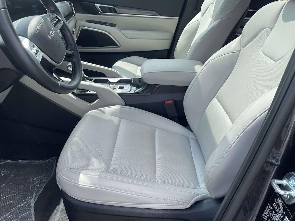 Step inside the Telluride S and discover a spacious and well-appointed cabin that comfortably accommodates up to eight passengers. The heated front bucket seats, SynTex Synthetic Leather seat trim, and power driver's seat provide exceptional comfort and style. The split-folding third-row seat and ample cargo space ensure you can easily adapt to your changing lifestyle and transport all your belongings with ease.