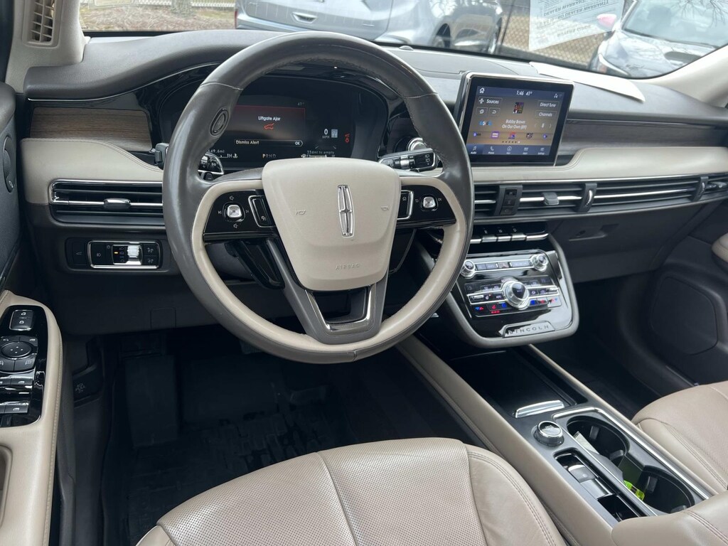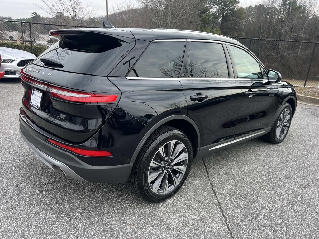 Black 2020 Lincoln Corsair Reserve FWD 8-Speed Automatic 2.0L I4 New Feature, Corsair Reserve, 4D Sport Utility, 2.0L I4, 8-Speed Automatic, FWD, Black, Sandstone Leather, 110V/150W AC Power Outlet, 12.3" Color Display, 14 Speakers, 3.81 Axle Ratio, 360-Degree Camera, 4-Wheel Disc Brakes, ABS brakes, Active Park Assist Plus, Adaptive Cruise Control w/Traffic Jam Assist, Air Conditioning, All-Weather Floor Liners, Alloy wheels, AM/FM radio: SiriusXM, Auto High-beam Headlights, Auto tilt-away steering wheel, Auto-dimming door mirrors, Auto-dimming Rear-View mirror, Automatic temperature control, Brake assist, Bumpers: body-color, Cargo Area Protector, Compass, Delay-off headlights, Driver door bin, Driver vanity mirror, Dual front impact airbags, Dual front side impact airbags, Electronic Stability Control, Elements Package, Emergency communication system: SYNC 3 911 Assist, Equipment Group 201A, Evasive Steering Assist (ESA), Forward Sensing System, Four wheel independent suspension, Front anti-roll bar, Front Bucket Seats, Front Center Armrest, Front dual zone A/C, Front fog lights, Front reading lights, Fully automatic headlights, Garage door transmitter, Heated door mirrors, Heated front seats, Heated Rear Seat, Heated Steering Wheel, Illuminated entry, Jeweled LED Headlamps, Knee airbag, Lane Departure Warning System, Leather steering wheel, Lincoln Co-Pilot360 Plus Package, Low tire pressure warning, Memory seat, Navigation System, Occupant sensing airbag, Outside temperature display, Overhead airbag, Overhead console, Panic alarm, Passenger door bin, Passenger vanity mirror, Phone As A Key, Power door mirrors, Power driver seat, Power Liftgate, Power moonroof: Panoramic Vista Roof, Power passenger seat, Power steering, Power windows, Premium Leather Heated Comfort Seats, Radio data system, Radio: Revel Audio System w/HD Radio & MP3, Rain Sensing Wipers, Rear anti-roll bar, Rear reading lights, Rear Removable Package Tray, Rear seat center armrest, Rear window defroster, Rear window wiper, Remote keyless entry, Reverse Brake Assist, Roof rack: rails only, Security system, SiriusXM Radio, Speed control, Speed-sensing steering, Speed-Sensitive Wipers, Split folding rear seat, Spoiler, Steering wheel memory, Steering wheel mounted A/C controls, Steering wheel mounted audio controls, SYNC 3 Communications & Entertainment System, Tachometer, Technology Package, Telescoping steering wheel, Tilt steering wheel, Traction control, Trip computer, Turn signal indicator mirrors, Variably intermittent wipers, Wheels: 19" Ultra Bright Machined Aluminum, Windshield Wiper De-Icer, Wireless Charging Pad.