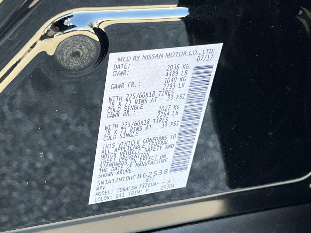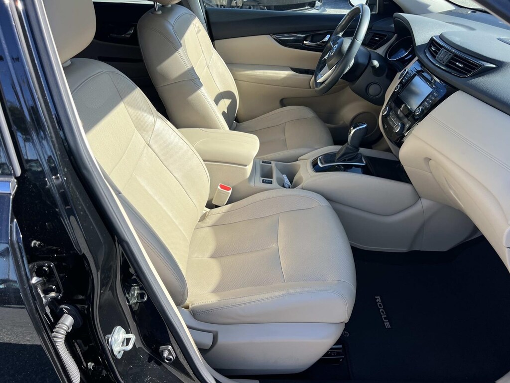 Magnetic Black 2017 Nissan Rogue SL FWD CVT with Xtronic 2.5L I4 DOHC 16V New Feature, **Back up Camera, **Keyless Entry, Rogue SL, 4D Sport Utility, 2.5L I4 DOHC 16V, CVT with Xtronic, FWD, Magnetic Black, Almond Leather, 4-Wheel Disc Brakes, 9 Speakers, ABS brakes, Air Conditioning, Alloy wheels, AM/FM radio: SiriusXM, Anti-whiplash front head restraints, Auto High-beam Headlights, Auto-dimming Rear-View mirror, Automatic temperature control, Black Splash Guards (Set of 4), Blind Spot Warning, Brake assist, Bumpers: body-color, CD player, Chrome Rear Bumper Protector, Delay-off headlights, Driver door bin, Driver vanity mirror, Dual front impact airbags, Dual front side impact airbags, Electronic Stability Control, Four wheel independent suspension, Front anti-roll bar, Front Bucket Seats, Front Center Armrest w/Storage, Front dual zone A/C, Front fog lights, Front reading lights, Fully automatic headlights, Garage door transmitter: HomeLink, Heated door mirrors, Heated front seats, Heated steering wheel, Illuminated entry, Leather Appointed Seat Trim, Leather Shift Knob, LED Headlights, Low tire pressure warning, Memory seat, Navigation System, Occupant sensing airbag, Outside temperature display, Overhead airbag, Overhead console, Panic alarm, Passenger door bin, Passenger vanity mirror, Power door mirrors, Power driver seat, Power Liftgate, Power Panoramic Moonroof, Power steering, Power windows, Quick Comfort Heated Front Bucket Seats, Radio data system, Rear anti-roll bar, Rear seat center armrest, Rear window defroster, Rear window wiper, Remote keyless entry, Roof rack: rails only, Security system, SL Premium Package, Speed control, Speed-sensing steering, Split folding rear seat, Spoiler, Steering wheel mounted audio controls, Tachometer, Telescoping steering wheel, Tilt steering wheel, Traction control, Trip computer, Turn signal indicator mirrors, Variably intermittent wipers.