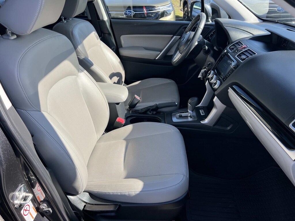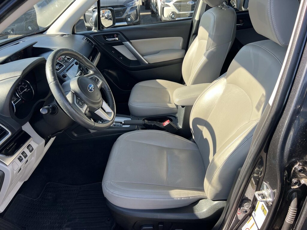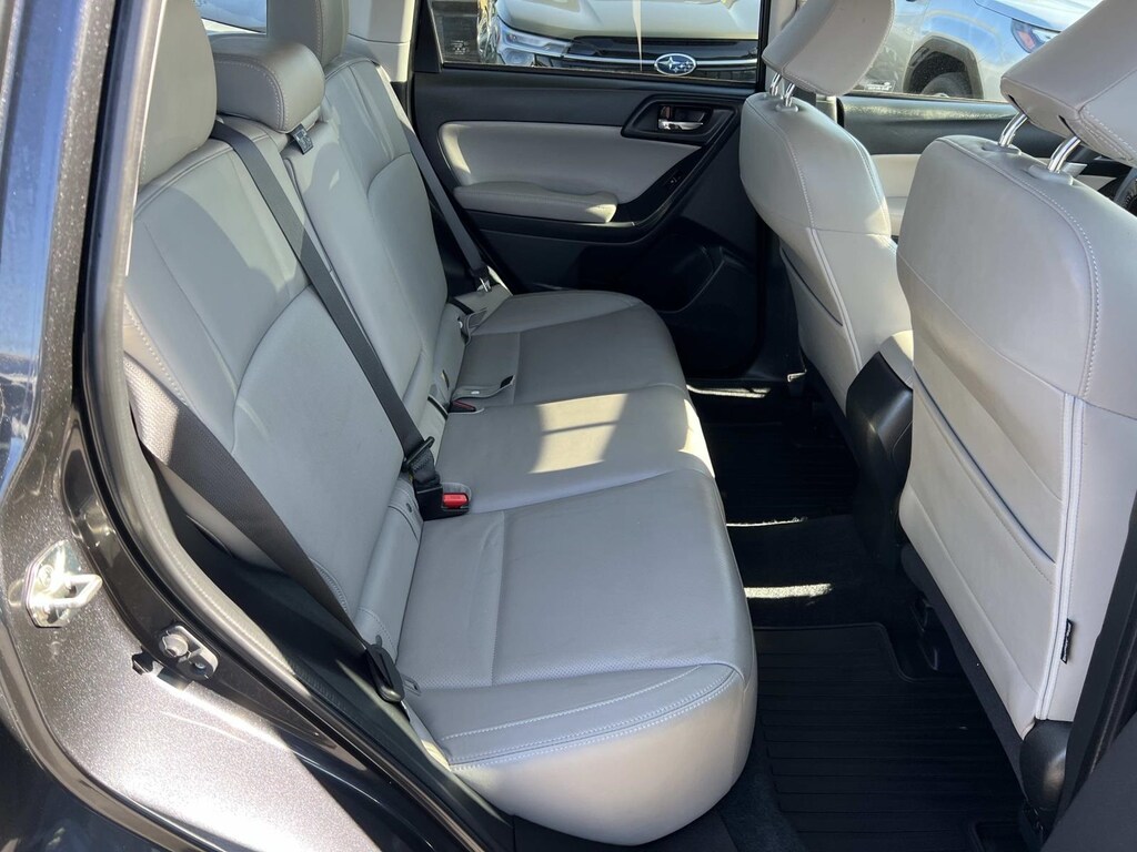 Dark Gray Metallic 2017 Subaru Forester 2.5i Limited AWD Lineartronic CVT 2.5L 4-Cylinder DOHC 16V VVT New Feature, **Back up Camera, Forester 2.5i Limited, 4D Sport Utility, 2.5L 4-Cylinder DOHC 16V VVT, Lineartronic CVT, AWD, Dark Gray Metallic, Gray w/Perforated Leather-Trimmed Upholstery, 17" Alloy Wheels, 3.70 Axle Ratio, 4-Wheel Disc Brakes, 6 Speakers, ABS brakes, Air Conditioning, Alloy wheels, AM/FM radio: SiriusXM, Automatic temperature control, Brake assist, Bumpers: body-color, CD player, Driver door bin, Driver vanity mirror, Dual front impact airbags, Dual front side impact airbags, Electronic Stability Control, Emergency communication system: STARLINK, Exterior Parking Camera Rear, Four wheel independent suspension, Front anti-roll bar, Front Bucket Seats, Front Center Armrest, Front fog lights, Front reading lights, Fully automatic headlights, Heated door mirrors, Heated Front Bucket Seats, Heated front seats, Illuminated entry, Knee airbag, Leather Shift Knob, Low tire pressure warning, Occupant sensing airbag, Outside temperature display, Overhead airbag, Overhead console, Panic alarm, Passenger door bin, Passenger vanity mirror, Perforated Leather-Trimmed Upholstery, Power door mirrors, Power driver seat, Power Liftgate, Power moonroof, Power steering, Power windows, Radio data system, Radio: Subaru Starlink 7.0" Multimedia Plus System, Rear anti-roll bar, Rear seat center armrest, Rear window defroster, Rear window wiper, Remote keyless entry, Roof rack: rails only, Security system, Speed control, Split folding rear seat, Spoiler, Steering wheel mounted audio controls, Tachometer, Telescoping steering wheel, Tilt steering wheel, Traction control, Trip computer, Variably intermittent wipers.