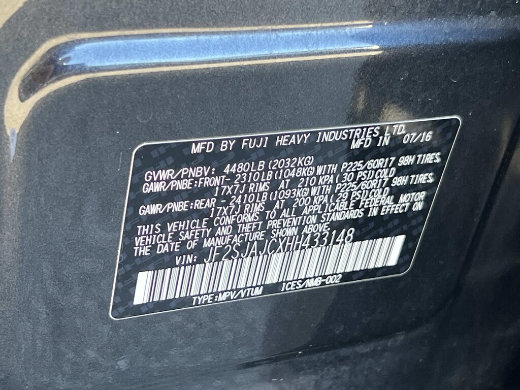 - Front tires: 225/60HR17.0