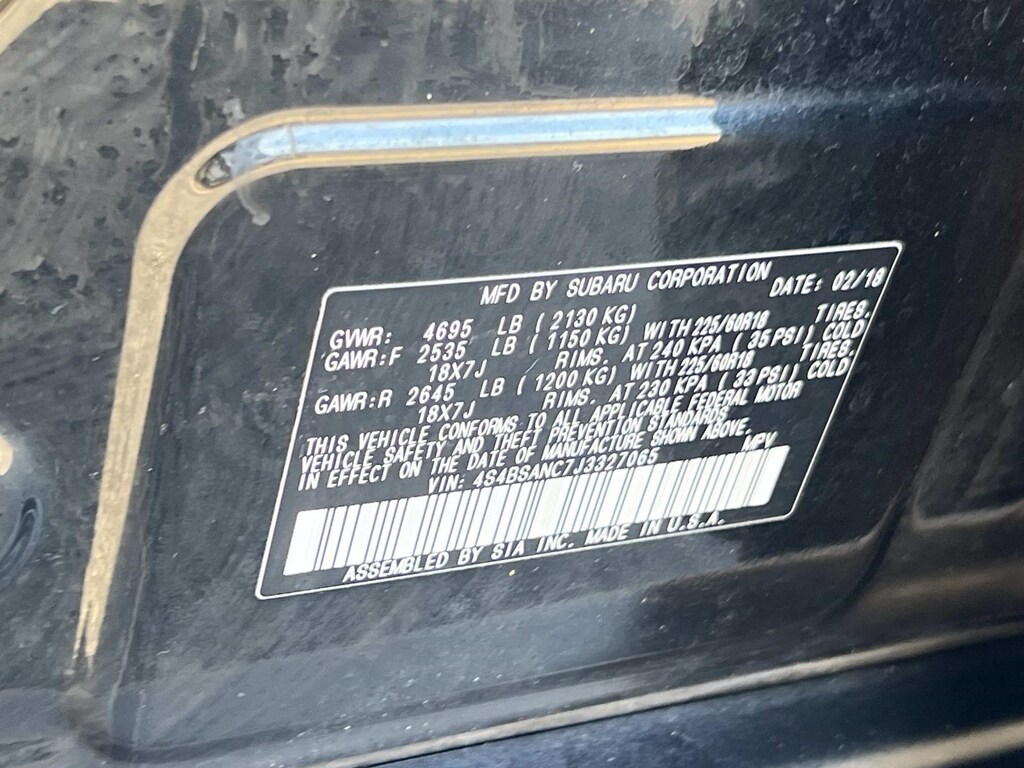 Crystal Black Silica 2018 Subaru Outback 2.5i Limited AWD CVT Lineartronic 2.5L 4-Cylinder DOHC 16V New Feature, **Back up Camera, **Keyless Entry, **Apple CarPlay, Outback 2.5i Limited, 4D Sport Utility, 2.5L 4-Cylinder DOHC 16V, CVT Lineartronic, AWD, Crystal Black Silica, Warm Ivory Leather, 12 Speakers, 4-Wheel Disc Brakes, 4.111 Axle Ratio, ABS brakes, Air Conditioning, All-Weather Floor Liners, Alloy wheels, AM/FM radio: SiriusXM, Anti-whiplash front head restraints, Apple CarPlay/Android Auto, Auto-Dimming Exterior Mirror w/Approach Light, Auto-dimming Rear-View mirror, Automatic temperature control, Brake assist, Bumpers: body-color, CD player, Compass, Driver door bin, Driver vanity mirror, Dual front impact airbags, Dual front side impact airbags, Electronic Stability Control, Emergency communication system: STARLINK, Exterior Parking Camera Rear, EyeSight & Navigation & HBA & RAB & LED & SRH, Four wheel independent suspension, Front anti-roll bar, Front Bucket Seats, Front Center Armrest w/Storage, Front dual zone A/C, Front fog lights, Front reading lights, Fully automatic headlights, Garage door transmitter, harman/kardon Surround Sound Speaker System, harman/kardon® Speakers, Heated door mirrors, Heated front seats, Heated rear seats, Heated Reclining Front Bucket Seats, High Beam Assist (HBA), Illuminated entry, Leather Shift Knob, LED Headlights, Low tire pressure warning, Map & Dome Lights LED Upgrade, Memory seat, Occupant sensing airbag, Outside temperature display, Overhead airbag, Overhead console, Panic alarm, Passenger door bin, Passenger vanity mirror, Perforated Leather-Trimmed Upholstery, Popular Package #2, Power door mirrors, Power driver seat, Power Liftgate, Power moonroof, Power passenger seat, Power steering, Power windows, Radio: Subaru STARLINK 8.0" Multimedia Nav System, Radio: Subaru STARLINK 8.0" Multimedia Plus System, Rear anti-roll bar, Rear Bumper Cover, Rear seat center armrest, Rear Seatback Protector, Rear window defroster, Rear window wiper, Remote keyless entry, Reverse Automatic Braking (RAB), Roof rack, Security system, Smartphone Integration, Speed control, Speed-sensing steering, Splash Guards, Split folding rear seat, Steering Responsive Headlights (SRH), Steering wheel mounted audio controls, Steering Wheel Paddle Shift Control Switches, Tachometer, Telescoping steering wheel, Tilt steering wheel, Traction control, Trip computer, Turn signal indicator mirrors, Variably intermittent wipers, Vehicle Information Display, Wheels: 18" x 7.0" Aluminum Alloy w/Machine Finish.