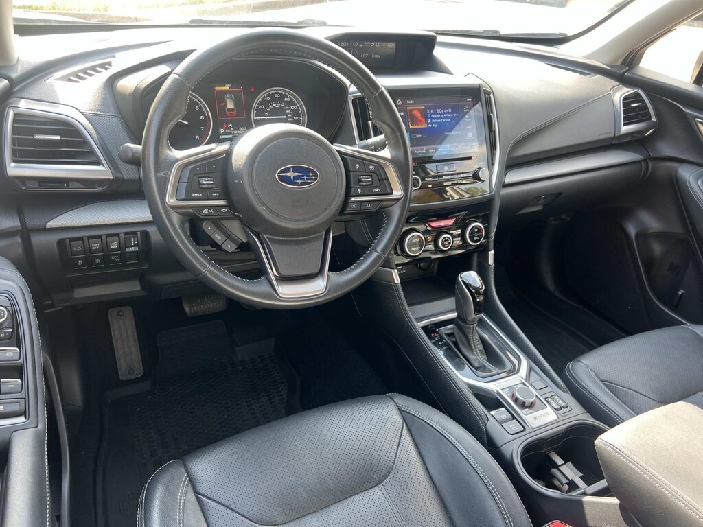 Bronze 2019 Subaru Forester Limited AWD Lineartronic CVT 2.5L 4-Cylinder DOHC 16V VVT New Feature, **Back up Camera, Forester Limited, 4D Sport Utility, 2.5L 4-Cylinder DOHC 16V VVT, Lineartronic CVT, AWD, Bronze, Black Leather, 3.70 Axle Ratio, 4-Wheel Disc Brakes, 6 Speakers, ABS brakes, Air Conditioning, Alloy wheels, AM/FM radio: SiriusXM, Auto High-beam Headlights, Automatic temperature control, Brake assist, Bumpers: body-color, CD player, Driver door bin, Driver vanity mirror, Dual front impact airbags, Dual front side impact airbags, Electronic Stability Control, Emergency communication system: STARLINK Safety and Security, Exterior Parking Camera Rear, Four wheel independent suspension, Front anti-roll bar, Front Bucket Seats, Front Center Armrest, Front dual zone A/C, Front fog lights, Front reading lights, Fully automatic headlights, Heated door mirrors, Heated Front Bucket Seats, Heated front seats, Illuminated entry, Knee airbag, Leather Shift Knob, Low tire pressure warning, Occupant sensing airbag, Outside temperature display, Overhead airbag, Overhead console, Panic alarm, Passenger door bin, Passenger vanity mirror, Perforated Leather-Trimmed Upholstery, Power door mirrors, Power driver seat, Power Liftgate, Power moonroof: Panoramic, Power steering, Power windows, Radio data system, Radio: Subaru Starlink 8.0" Multimedia Plus System, Rear anti-roll bar, Rear seat center armrest, Rear window defroster, Rear window wiper, Remote keyless entry, Roof rack: rails only, Security system, Speed control, Speed-sensing steering, Split folding rear seat, Spoiler, STARLINK/Apple CarPlay/Android Auto, Steering wheel mounted audio controls, Tachometer, Telescoping steering wheel, Tilt steering wheel, Traction control, Trip computer, Turn signal indicator mirrors, Variably intermittent wipers, Wheels: 18" x 7.0J Black Machine Finish Alum Alloy.