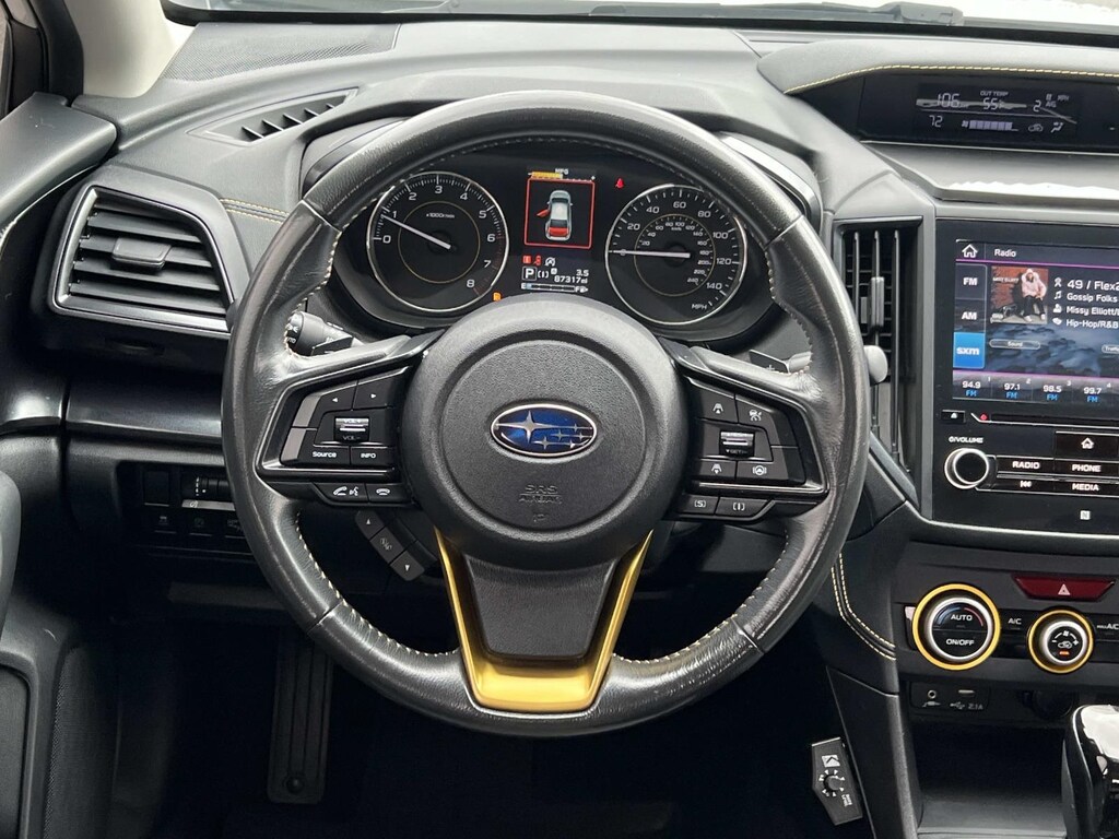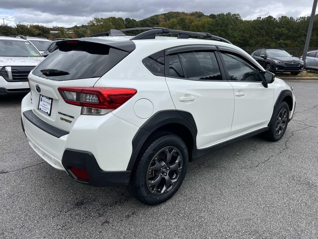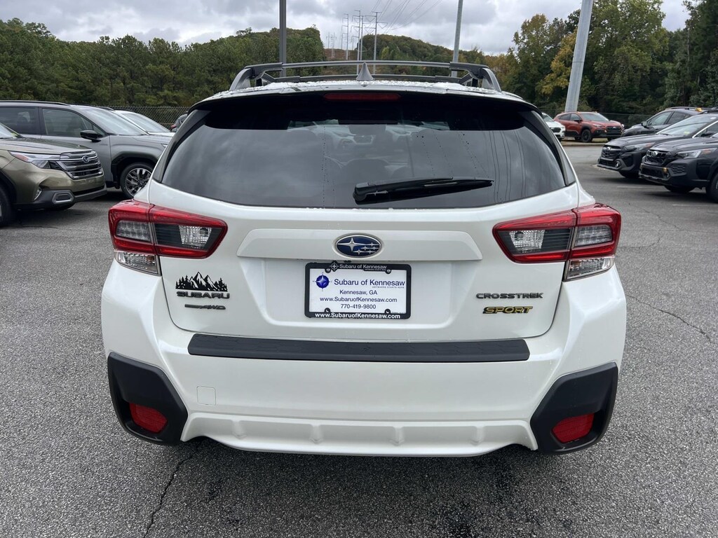 Crystal White Pearl 2021 Subaru Crosstrek Sport AWD Lineartronic CVT 2.5L DOHC New Feature, **Back up Camera, **Bluetooth, **Keyless Entry, **Blind Spot Monitor, **Apple CarPlay, Crosstrek Sport, 4D Sport Utility, 2.5L DOHC, Lineartronic CVT, AWD, Crystal White Pearl, Gray W/Yellow Stitching Premium Synthetic, 3.70 Axle Ratio, 4-Wheel Disc Brakes, 6 Speakers, ABS brakes, Air Conditioning, Alloy wheels, AM/FM radio: SiriusXM, Anti-whiplash front head restraints, Auto-Dimming Exterior Mirror w/Approach Light, Auto-Dimming Mirror w/Compass & HomeLink, Automatic temperature control, Blind Spot Detection (BSD), Brake assist, Bumpers: body-color, CD player, Driver door bin, Driver vanity mirror, Dual front impact airbags, Dual front side impact airbags, Electronic Stability Control, Emergency communication system: STARLINK Safety and Security (Subscription Required), Exterior Parking Camera Rear, Four wheel independent suspension, Front anti-roll bar, Front Bucket Seats, Front Center Armrest, Front fog lights, Front reading lights, Fully automatic headlights, Heated door mirrors, Heated Front Bucket Seats, Heated front seats, Illuminated entry, Knee airbag, Leather Shift Knob, Low tire pressure warning, Map & Dome Lights LED Upgrade, Moonroof Package, Occupant sensing airbag, Outside temperature display, Overhead airbag, Overhead console, Panic alarm, Passenger door bin, Passenger vanity mirror, Popular Package #3, Power door mirrors, Power Moonroof, Power steering, Power windows, Radio data system, Radio: Subaru STARLINK 6.5" Multimedia Plus System, Radio: Subaru STARLINK 8.0" Multimedia Plus System, Rear anti-roll bar, Rear Seatback Protector, Rear window defroster, Rear window wiper, Remote keyless entry, Security system, Speed control, Speed-sensing steering, Split folding rear seat, Spoiler, STARLINK/Apple CarPlay/Android Auto, StarTex Upholstery, Steering wheel mounted audio controls, Subaru STARLINK Smartphone Integration, Tachometer, Telescoping steering wheel, Tilt steering wheel, Traction control, Trip computer, Turn signal indicator mirrors, Variably intermittent wipers, Wheels: 17" Alloy Dark Gray Finish Sport Type.