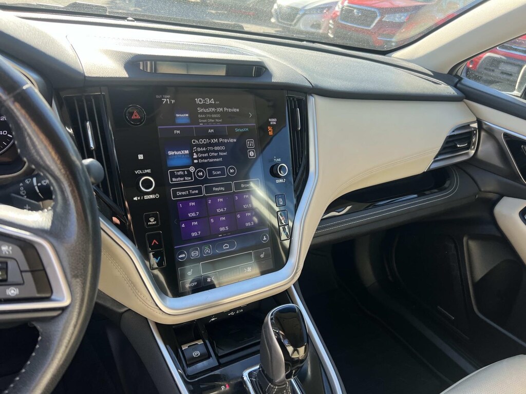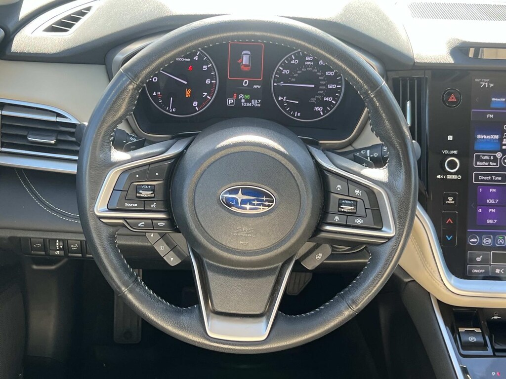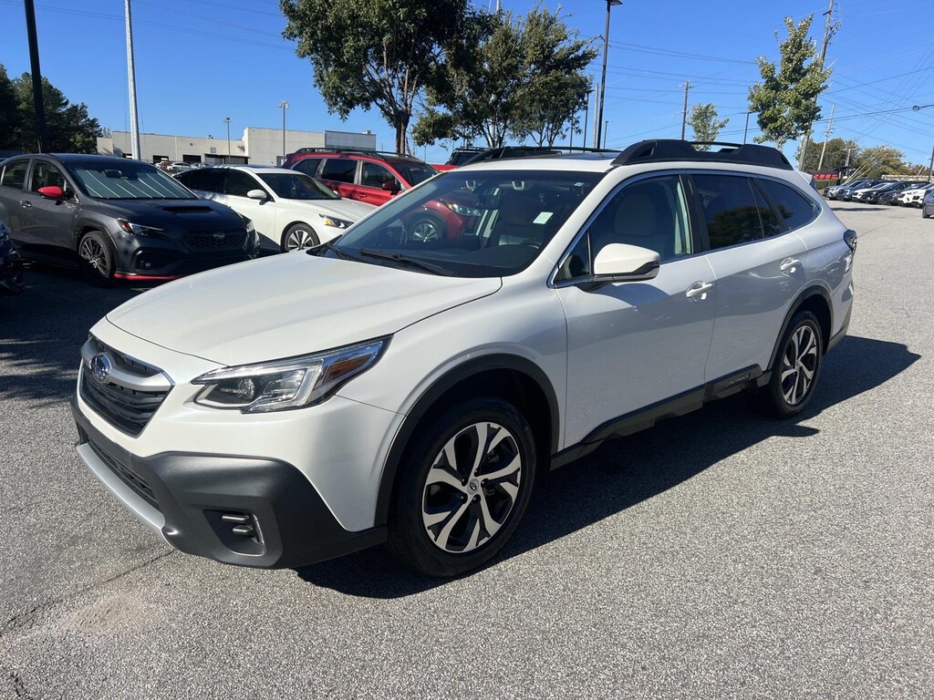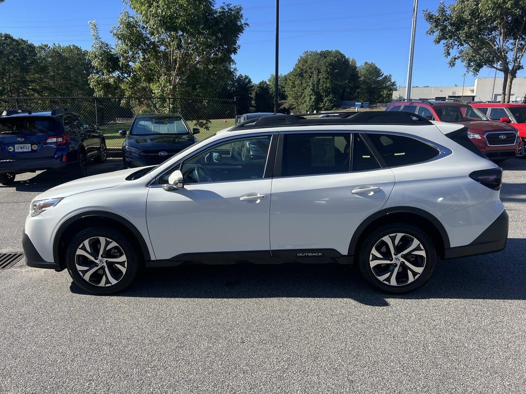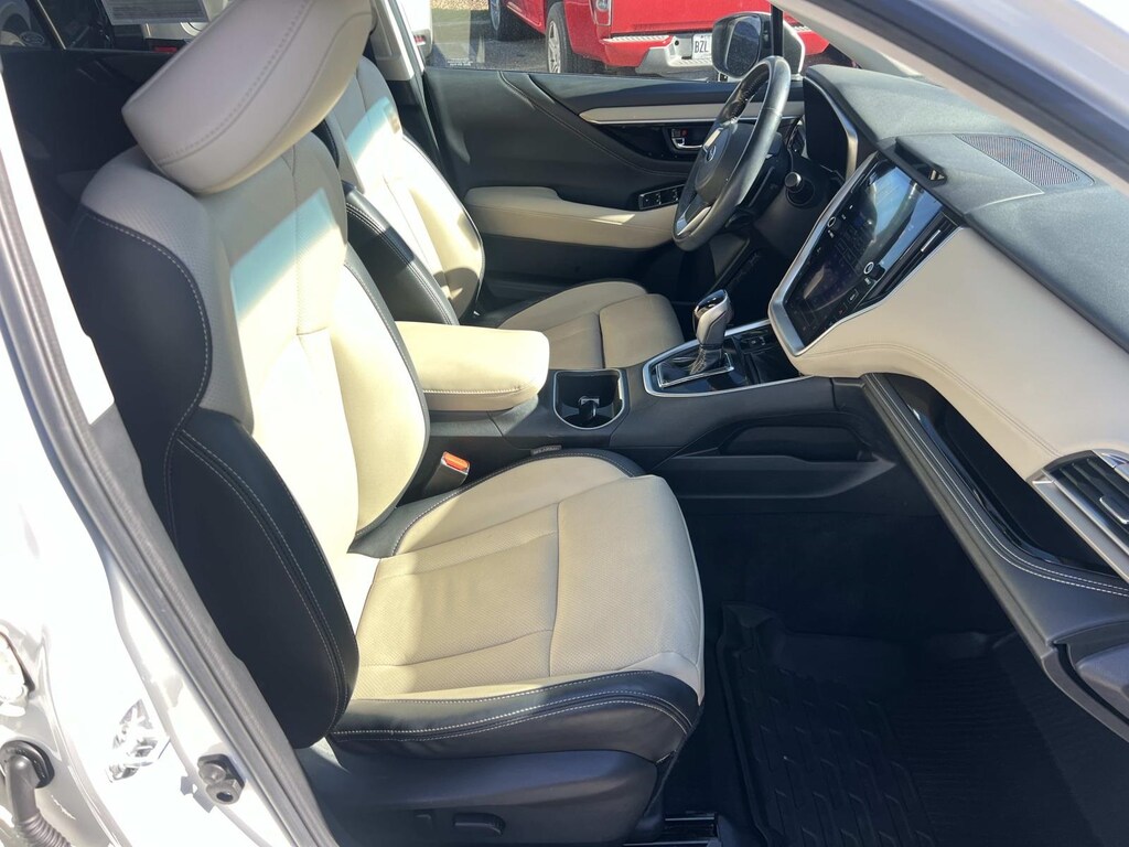 White 2021 Subaru Outback Limited AWD CVT Lineartronic 2.5L 4-Cylinder DOHC 16V New Feature, **Back up Camera, **Bluetooth, **Keyless Entry, **Blind Spot Monitor, Outback Limited, 4D Sport Utility, 2.5L 4-Cylinder DOHC 16V, CVT Lineartronic, AWD, White, Warm Ivory Leather, 12 Speakers, 3.90 Axle Ratio, 4-Wheel Disc Brakes, ABS brakes, Air Conditioning, Alloy wheels, AM/FM radio: SiriusXM, Auto High-beam Headlights, Auto-dimming Rear-View mirror, Automatic temperature control, Brake assist, Bumpers: body-color, Compass, Driver door bin, Driver Focus (Distraction Mitigation System), Driver vanity mirror, Dual front impact airbags, Dual front side impact airbags, Electronic Stability Control, Emergency communication system: STARLINK Safety and Security (Subscription Required), Exterior Parking Camera Rear, Four wheel independent suspension, Front anti-roll bar, Front Bucket Seats, Front Center Armrest w/Storage, Front dual zone A/C, Front fog lights, Front reading lights, Fully automatic headlights, Garage door transmitter: HomeLink, harman/kardon Surround Sound Speaker System, harman/kardon® Speakers, Heated door mirrors, Heated Front Bucket Seats, Heated front seats, Heated rear seats, Heated Steering Wheel, Illuminated entry, Knee airbag, Leather steering wheel, Low tire pressure warning, Memory seat, Occupant sensing airbag, Outside temperature display, Overhead airbag, Overhead console, Panic alarm, Passenger door bin, Passenger vanity mirror, Perforated Leather-Trimmed Upholstery, Power door mirrors, Power driver seat, Power Liftgate, Power Moonroof, Power Moonroof & HSW & Navigation System, Power passenger seat, Power steering, Power windows, Radio: Subaru STARLINK 11.6" Multimedia Nav System, Radio: Subaru STARLINK 11.6" Multimedia Plus Sys, Rear anti-roll bar, Rear seat center armrest, Rear window defroster, Rear window wiper, Remote keyless entry, Roof rack, Security system, Speed control, Speed-sensing steering, Split folding rear seat, Spoiler, STARLINK/Apple CarPlay/Android Auto, Steering wheel mounted audio controls, Steering Wheel Paddle Shift Control Switches, Tachometer, Telescoping steering wheel, Tilt steering wheel, Traction control, Trip computer, Turn signal indicator mirrors, Variably intermittent wipers, Wheels: 18" x 7J Black Aluminum Alloy.