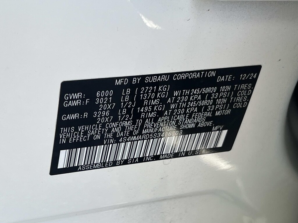 Certified. White 2025 Subaru Ascent Limited AWD Lineartronic CVT 2.4L 4-Cylinder DOHC 16V New Feature, **Back up Camera, **Bluetooth, Ascent Limited, 4D Sport Utility, 2.4L 4-Cylinder DOHC 16V, Lineartronic CVT, AWD, White, 14 Speakers, 3rd row seats: bench, 4-Wheel Disc Brakes, ABS brakes, Air Conditioning, Alloy wheels, AM/FM radio: SiriusXM, Auto High-beam Headlights, Auto-dimming Rear-View mirror, Automatic temperature control, Brake assist, Bumpers: body-color, Compass, Delay-off headlights, Driver door bin, Driver vanity mirror, Dual front impact airbags, Dual front side impact airbags, Electronic Stability Control, Emergency communication system: STARLINK Safety and Security (Subscription Required), Exterior Parking Camera Rear, Four wheel independent suspension, Front anti-roll bar, Front Bucket Seats, Front Center Armrest, Front dual zone A/C, Front fog lights, Front reading lights, Fully automatic headlights, Garage door transmitter: HomeLink, harman/kardon® Speakers, Heated door mirrors, Heated Front Bucket Seats, Heated front seats, Heated rear seats, Heated steering wheel, HVAC memory, Illuminated entry, Knee airbag, Leather Shift Knob, Leather steering wheel, Low tire pressure warning, Memory seat, Navigation System, Occupant sensing airbag, Outside temperature display, Overhead airbag, Overhead console, Panic alarm, Passenger door bin, Passenger vanity mirror, Power door mirrors, Power driver seat, Power Liftgate, Power moonroof, Power passenger seat, Power steering, Power windows, Radio data system, Radio: Subaru STARLINK 11.6" Multimedia Nav System, Rear air conditioning, Rear anti-roll bar, Rear reading lights, Rear window defroster, Rear window wiper, Reclining 3rd row seat, Remote keyless entry, Security system, Speed control, Speed-sensing steering, Split folding rear seat, Spoiler, STARLINK/Apple CarPlay/Android Auto, StarTex Upholstery, Steering wheel mounted audio controls, Tachometer, Telescoping steering wheel, Tilt steering wheel, Traction control, Trip computer, Turn signal indicator mirrors, Variably intermittent wipers, Wheels: 20" x 7.5 J Bronze Alloy w/Metallic Finish.