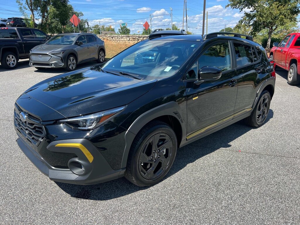 Certified. Black Metallic 2025 Subaru Crosstrek Sport AWD Lineartronic CVT 2.5L 4-Cylinder DOHC 16V New Feature, **Back up Camera, Crosstrek Sport, 4D Sport Utility, 2.5L 4-Cylinder DOHC 16V, Lineartronic CVT, AWD, Black Metallic, Gray Cloth, 4-Wheel Disc Brakes, 6 Speakers, ABS brakes, Air Conditioning, Alloy wheels, AM/FM radio: SiriusXM, Anti-whiplash front head restraints, Auto High-beam Headlights, Automatic temperature control, Brake assist, Bumpers: body-color, Driver door bin, Driver vanity mirror, Dual front impact airbags, Dual front side impact airbags, Electronic Stability Control, Emergency communication system: STARLINK Safety and Security (Subscription Required), Exterior Parking Camera Rear, Four wheel independent suspension, Front anti-roll bar, Front Bucket Seats, Front Center Armrest, Front dual zone A/C, Front fog lights, Front reading lights, Fully automatic headlights, Heated door mirrors, Heated Front Bucket Seats, Heated front seats, Illuminated entry, Knee airbag, Leather Shift Knob, Leather steering wheel, Low tire pressure warning, Occupant sensing airbag, Outside temperature display, Overhead airbag, Overhead console, Panic alarm, Passenger door bin, Passenger vanity mirror, Power door mirrors, Power steering, Power windows, Radio data system, Radio: Subaru STARLINK 11.6" Multimedia Plus Sys, Rear anti-roll bar, Rear seat center armrest, Rear window defroster, Rear window wiper, Remote keyless entry, Security system, Speed control, Speed-sensing steering, Split folding rear seat, Spoiler, Sport Cloth Upholstery, STARLINK/Apple CarPlay/Android Auto, Steering wheel mounted audio controls, Tachometer, Telescoping steering wheel, Tilt steering wheel, Traction control, Trip computer, Turn signal indicator mirrors, Variably intermittent wipers, Wheels: 18" x 7.0" J Dark Gray Aluminum-Alloy.