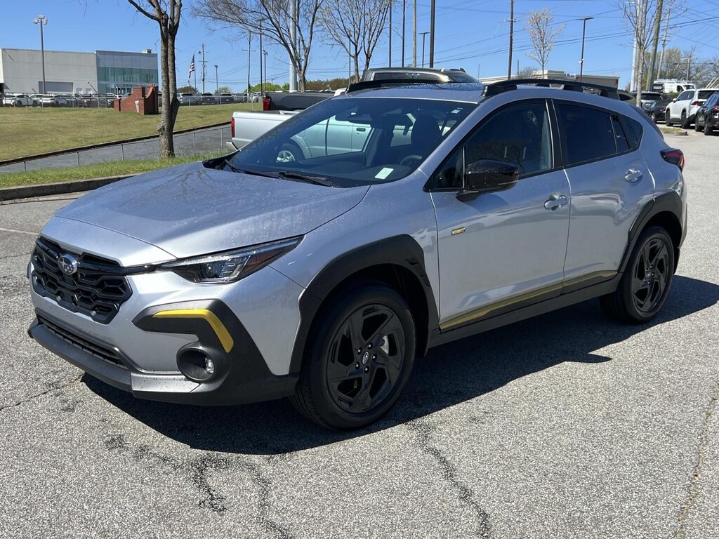 Ice Silver Metallic 2025 Subaru Crosstrek Sport AWD Lineartronic CVT 2.5L 4-Cylinder DOHC 16V New Feature, **Bluetooth, **Keyless Entry, **Automatic Headlights, **Heated Seats, **Alloy Wheels, Crosstrek Sport, 4D Sport Utility, 2.5L 4-Cylinder DOHC 16V, Lineartronic CVT, AWD, Ice Silver Metallic, Gray w/Sport Cloth Upholstery, 10-Way Power Driver's Seat, 4-Wheel Disc Brakes, 6 Speakers, ABS brakes, Air Conditioning, All-Weather Floor Liners, Alloy wheels, AM/FM radio: SiriusXM, Anti-whiplash front head restraints, Auto High-beam Headlights, Auto-Dimming Exterior Mirror w/Approach Light, Auto-Dimming Mirror w/Compass & HomeLink, Automatic temperature control, Blind Spot Detection (BSD), Brake assist, BSD/RCTA & Power Driver Seat & Power Moonroof, Bumpers: body-color, Driver door bin, Driver vanity mirror, Dual front impact airbags, Dual front side impact airbags, Electronic Stability Control, Emergency communication system, Exterior Parking Camera Rear, Four wheel independent suspension, Front anti-roll bar, Front Bucket Seats, Front Center Armrest, Front dual zone A/C, Front fog lights, Front reading lights, Fully automatic headlights, Heated door mirrors, Heated Front Bucket Seats, Heated front seats, Illuminated entry, Knee airbag, Leather Shift Knob, Leather steering wheel, Low tire pressure warning, Occupant sensing airbag, Outside temperature display, Overhead airbag, Overhead console, Panic alarm, Passenger door bin, Passenger vanity mirror, Popular Package #4A, Power door mirrors, Power Moonroof, Power steering, Power windows, Radio data system, Radio: Subaru 11.6" Multimedia Plus System, Rear anti-roll bar, Rear Bumper Cover, Rear Cross-Traffic Alert (RCTA) System, Rear seat center armrest, Rear window defroster, Rear window wiper, Remote keyless entry, Security system, Speed control, Speed-sensing steering, Splash Guards, Split folding rear seat, Spoiler, Sport Cloth Upholstery, Steering wheel mounted audio controls, Tachometer, Telescoping steering wheel, Tilt steering wheel, Traction control, Trip computer, Turn signal indicator mirrors, Variably intermittent wipers, Wheels: 18" x 7.0" J Dark Gray Aluminum-Alloy.