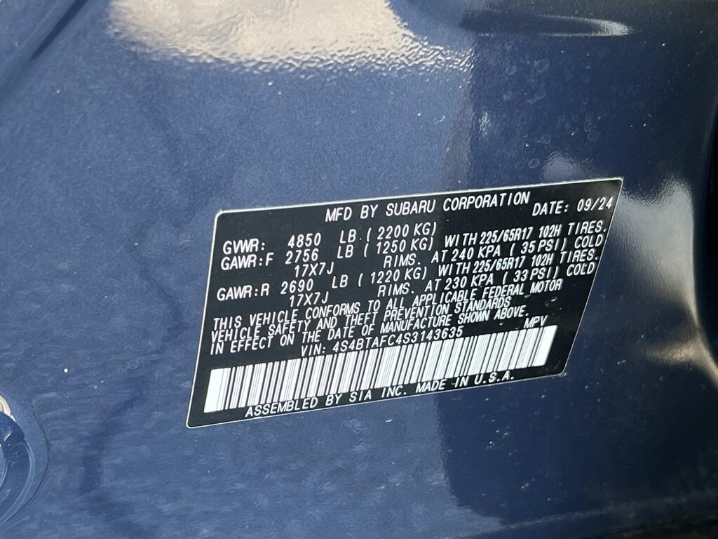 Certified. Blue 2025 Subaru Outback Premium AWD CVT Lineartronic 2.5L 4-Cylinder DOHC 16V New Feature, **Back up Camera, **Bluetooth, **Keyless Entry, **Blind Spot Monitor, **Apple CarPlay, Outback Premium, 4D Sport Utility, 2.5L 4-Cylinder DOHC 16V, CVT Lineartronic, AWD, Blue, Slate Black w/Cloth Upholstery, 4-Wheel Disc Brakes, 6 Speakers, ABS brakes, Air Conditioning, Alloy wheels, Apple CarPlay & Android Auto, Auto High-beam Headlights, Automatic temperature control, Brake assist, BSD & RCTA & Keyless Access & Push Button Start, Cloth Upholstery, Driver door bin, Driver vanity mirror, Dual front impact airbags, Dual front side impact airbags, Electronic Stability Control, Emergency communication system: MySubaru Safety (3-year free trial), Exterior Parking Camera Rear, Four wheel independent suspension, Front anti-roll bar, Front Bucket Seats, Front Center Armrest w/Storage, Front dual zone A/C, Front fog lights, Front reading lights, Fully automatic headlights, Heated Front Bucket Seats, Heated front seats, Illuminated entry, Knee airbag, Leather Shift Knob, Low tire pressure warning, Occupant sensing airbag, Outside temperature display, Overhead airbag, Overhead console, Panic alarm, Passenger door bin, Passenger vanity mirror, Power door mirrors, Power driver seat, Power Moonroof, Power steering, Power windows, Radio: Subaru 11.6" Multimedia Plus System, Radio: Subaru 11.6" Multimedia System w/Navigation, Rear anti-roll bar, Rear seat center armrest, Rear window defroster, Rear window wiper, Remote keyless entry, Roof rack, Security system, Speed control, Speed-sensing steering, Split folding rear seat, Spoiler, Steering wheel mounted audio controls, Tachometer, Telescoping steering wheel, Tilt steering wheel, Traction control, Trip computer, Turn signal indicator mirrors, Variably intermittent wipers, Wheels: 17" x 7J Black Aluminum-Alloy.
