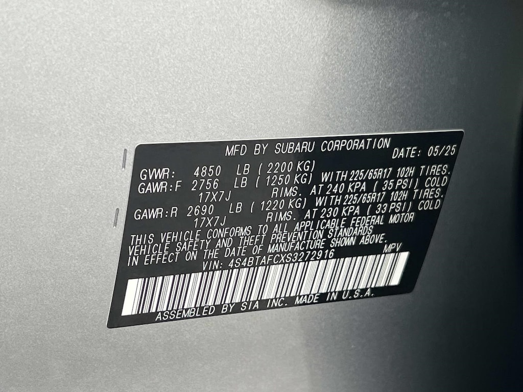 Certified. Ice Silver Metallic 2025 Subaru Outback Premium AWD CVT Lineartronic 2.5L 4-Cylinder DOHC 16V New Feature, **Back up Camera, **Bluetooth, **Keyless Entry, **Blind Spot Monitor, **Apple CarPlay, Outback Premium, 4D Sport Utility, 2.5L 4-Cylinder DOHC 16V, CVT Lineartronic, AWD, Ice Silver Metallic, Black Cloth, 4-Wheel Disc Brakes, 6 Speakers, ABS brakes, Air Conditioning, All-Weather Floor Liners, Alloy wheels, AM/FM radio: SiriusXM with 360L, Apple CarPlay & Android Auto, Auto High-beam Headlights, Auto-Dimming Exterior Mirror w/Approach Light, Auto-Dimming Mirror w/Compass & HomeLink, Automatic temperature control, Blind Spot Detection (BSD), Brake assist, BSD & RCTA & Keyless Access & Push Button Start, Bumpers: body-color, Cloth Upholstery, Driver door bin, Driver vanity mirror, Dual front impact airbags, Dual front side impact airbags, Electronic Stability Control, Emergency communication system: MySubaru Safety (3-year free trial), Exterior Parking Camera Rear, Four wheel independent suspension, Front anti-roll bar, Front Bucket Seats, Front Center Armrest w/Storage, Front dual zone A/C, Front fog lights, Front reading lights, Fully automatic headlights, Hands-Free Power Rear Gate, Heated door mirrors, Heated Front Bucket Seats, Heated front seats, Illuminated entry, Keyless Access w/Push Button Start, Knee airbag, Leather Shift Knob, Leather steering wheel, LED Upgrade, Low tire pressure warning, Occupant sensing airbag, Outside temperature display, Overhead airbag, Overhead console, Panic alarm, Passenger door bin, Passenger vanity mirror, Popular Package #1, Power door mirrors, Power driver seat, Power Moonroof, Power steering, Power windows, Radio: Subaru 11.6" Multimedia Plus System, Radio: Subaru 11.6" Multimedia System w/Navigation, Rear anti-roll bar, Rear Bumper Cover, Rear Cross Traffic Alert (RCTA), Rear seat center armrest, Rear window defroster, Rear window wiper, Remote keyless entry, Roof rack, Security system, Speed control, Speed-sensing steering, Split folding rear seat, Spoiler, Steering wheel mounted audio controls, Tachometer, Telescoping steering wheel, Tilt steering wheel, Traction control, Trip computer, Turn signal indicator mirrors, Variably intermittent wipers, Wheels: 17" x 7J Black Aluminum-Alloy.