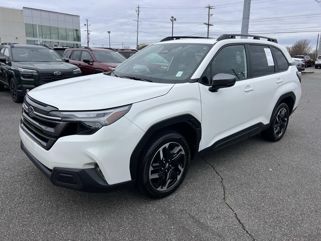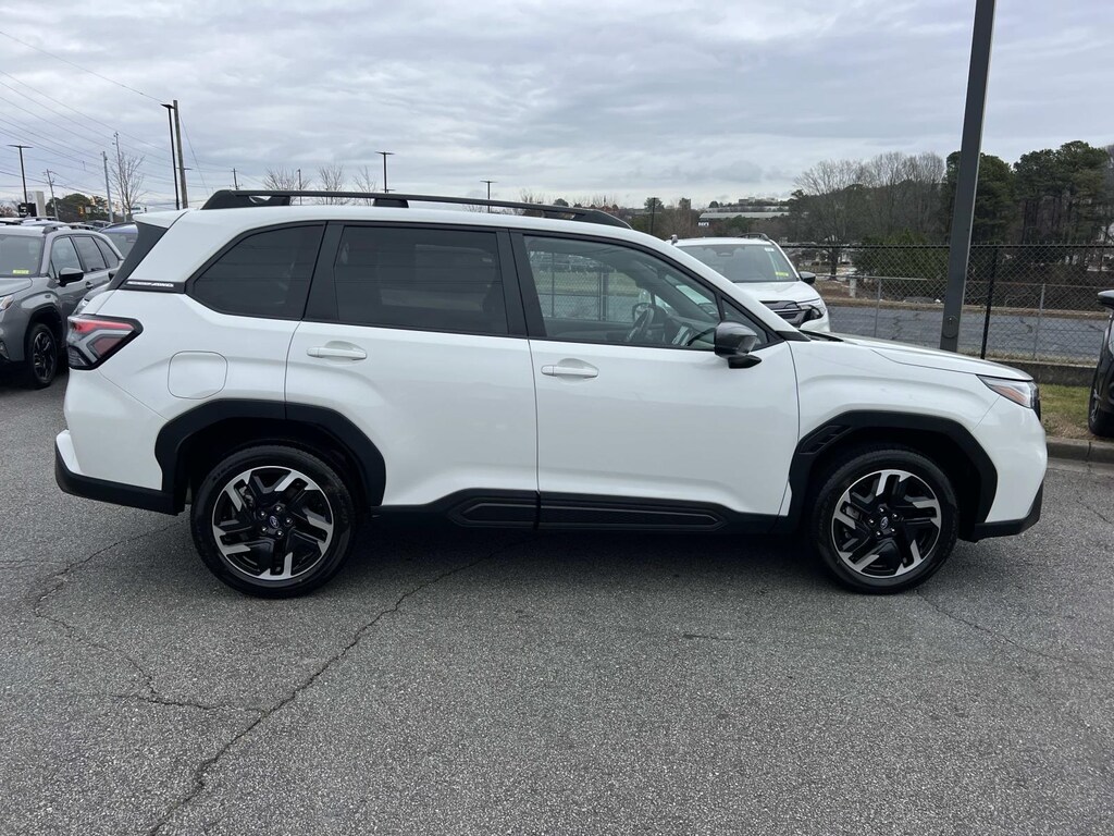 Certified. White 2026 Subaru Forester Limited AWD Lineartronic CVT 2.5L 4-Cylinder DOHC 16V New Feature, **Back up Camera, **Bluetooth, **Keyless Entry, **Blind Spot Monitor, **Apple CarPlay, Forester Limited, 4D Sport Utility, 2.5L 4-Cylinder DOHC 16V, Lineartronic CVT, AWD, White, 4-Wheel Disc Brakes, 6 Speakers, ABS brakes, Air Conditioning, Alloy wheels, AM/FM radio: SiriusXM with 360L, Anti-whiplash front head restraints, Auto High-beam Headlights, Automatic temperature control, Brake assist, Bumpers: body-color, Driver door bin, Driver vanity mirror, Dual front impact airbags, Dual front side impact airbags, Electronic Stability Control, Emergency communication system: MySubaru Companion (5-years free), Exterior Parking Camera Rear, Four wheel independent suspension, Front anti-roll bar, Front Bucket Seats, Front Center Armrest, Front dual zone A/C, Front fog lights, Front reading lights, Fully automatic headlights, Harman/Kardon Speaker System and Navigation and Reverse Automatic Braking, Heated door mirrors, Heated Front Bucket Seats, Heated front seats, Heated steering wheel, Illuminated entry, Knee airbag, Leather steering wheel, Low tire pressure warning, Occupant sensing airbag, Outside temperature display, Overhead airbag, Overhead console, Panic alarm, Passenger door bin, Passenger vanity mirror, Perforated Leather-Trimmed Upholstery, Power door mirrors, Power driver seat, Power Liftgate, Power moonroof: Panoramic, Power passenger seat, Power steering, Power windows, Radio data system, Radio: Subaru 11.6" Multimedia Navigation System, Radio: Subaru 11.6" Multimedia Plus System, Rain sensing wipers, Rear anti-roll bar, Rear seat center armrest, Rear window defroster, Rear window wiper, Remote keyless entry, Reverse Automatic Braking (RAB) System, Security system, Speed control, Speed-sensing steering, Split folding rear seat, Spoiler, Steering wheel mounted audio controls, Tachometer, Telescoping steering wheel, Tilt steering wheel, Traction control, Trip computer, Turn signal indicator mirrors, Variably intermittent wipers, Wheels: 18" x 7.0 J Dark Metallic Aluminum-Alloy.